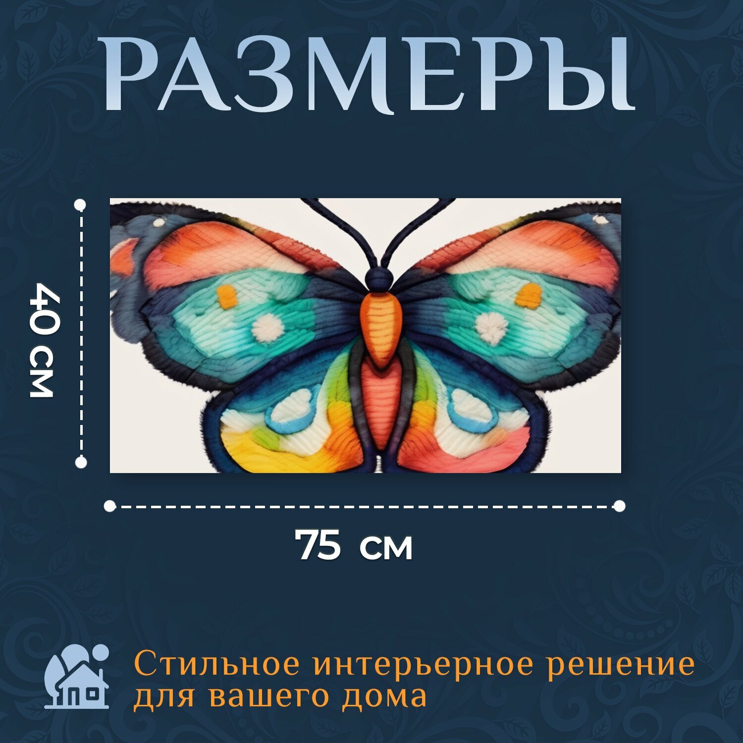 Картина на холсте "Бабочка из шерсти, в стиле акварель" на подрамнике 75х40 см. для интерьера информация: