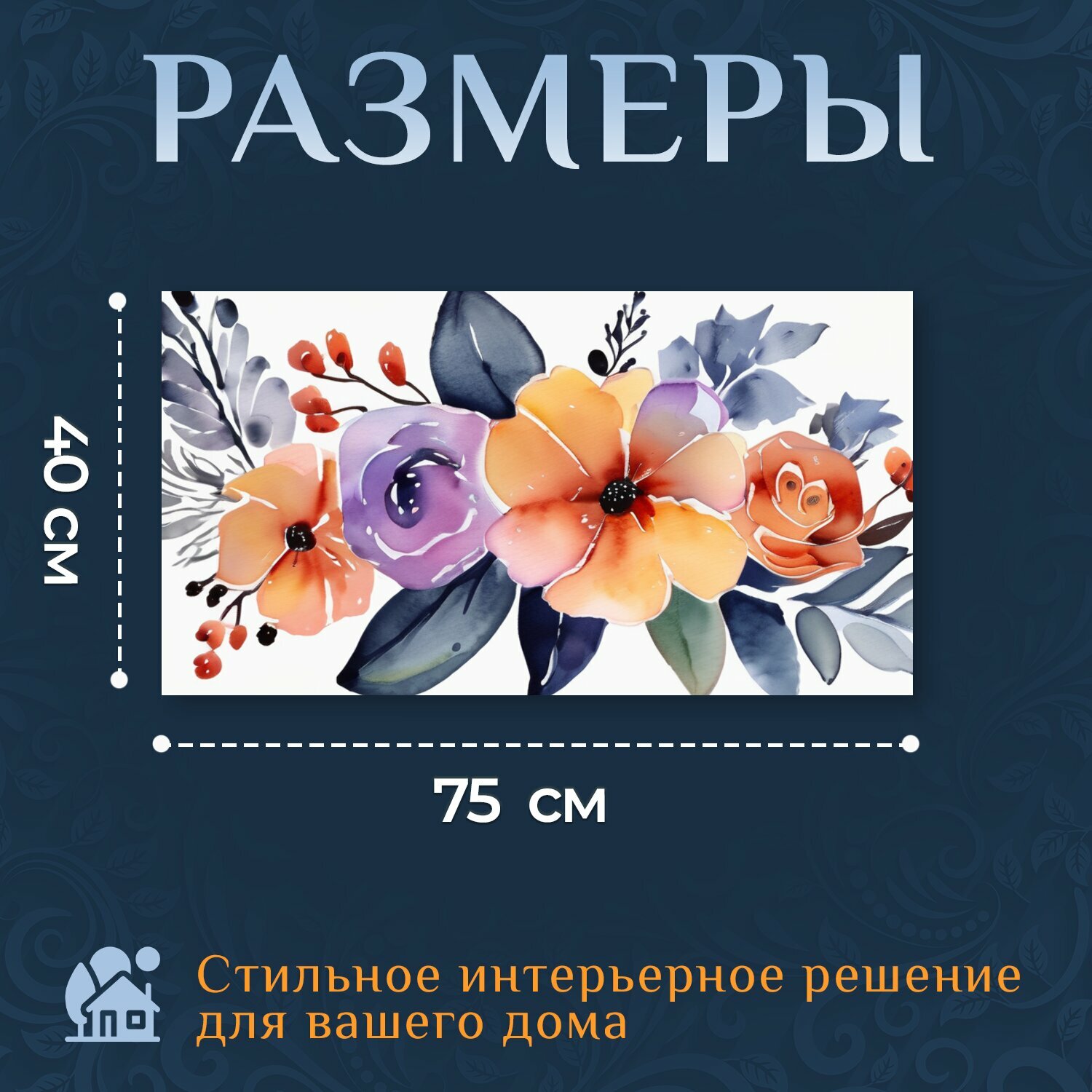 Картина на холсте "Цветы png, в стиле акварель" на подрамнике 75х40 см. для интерьера информация:
