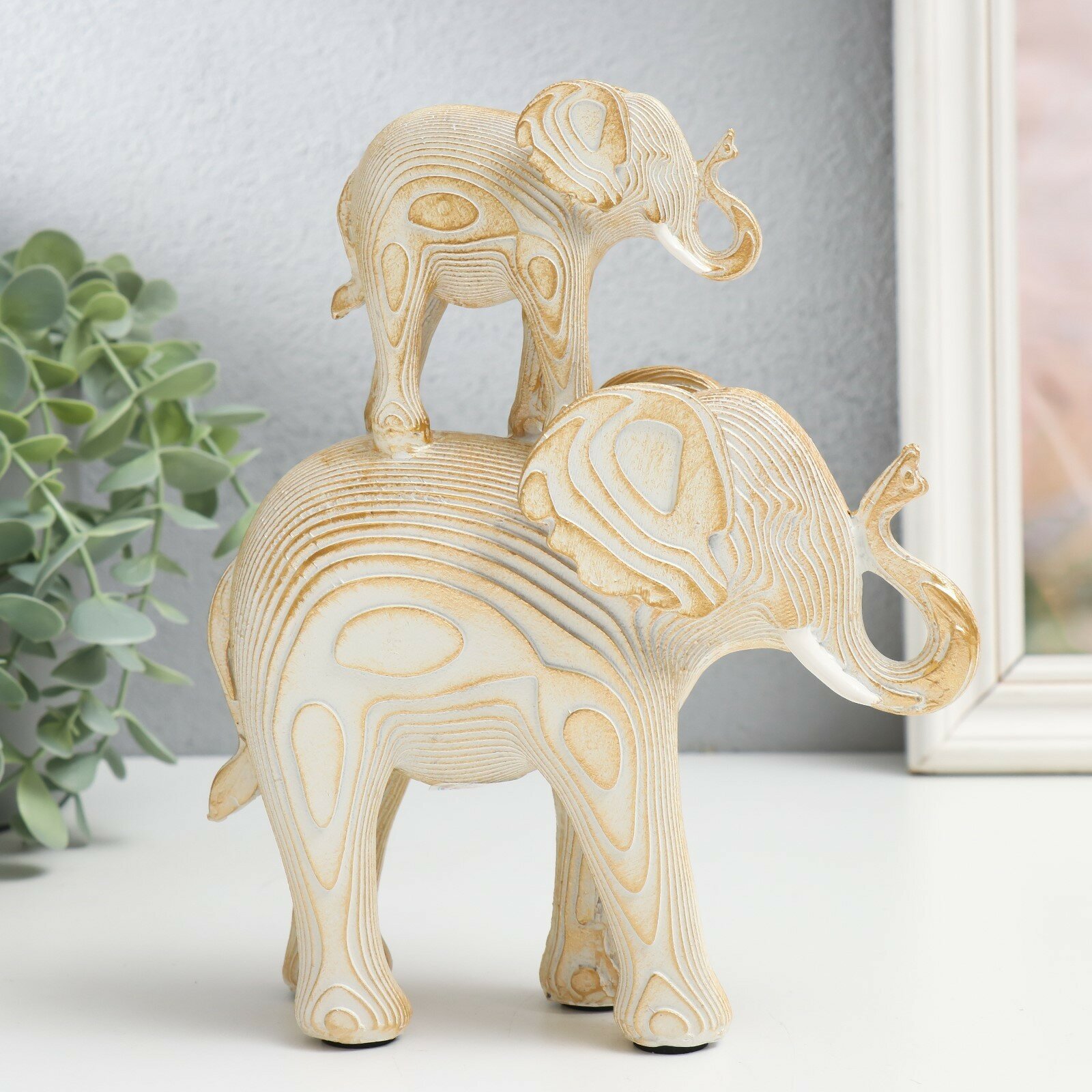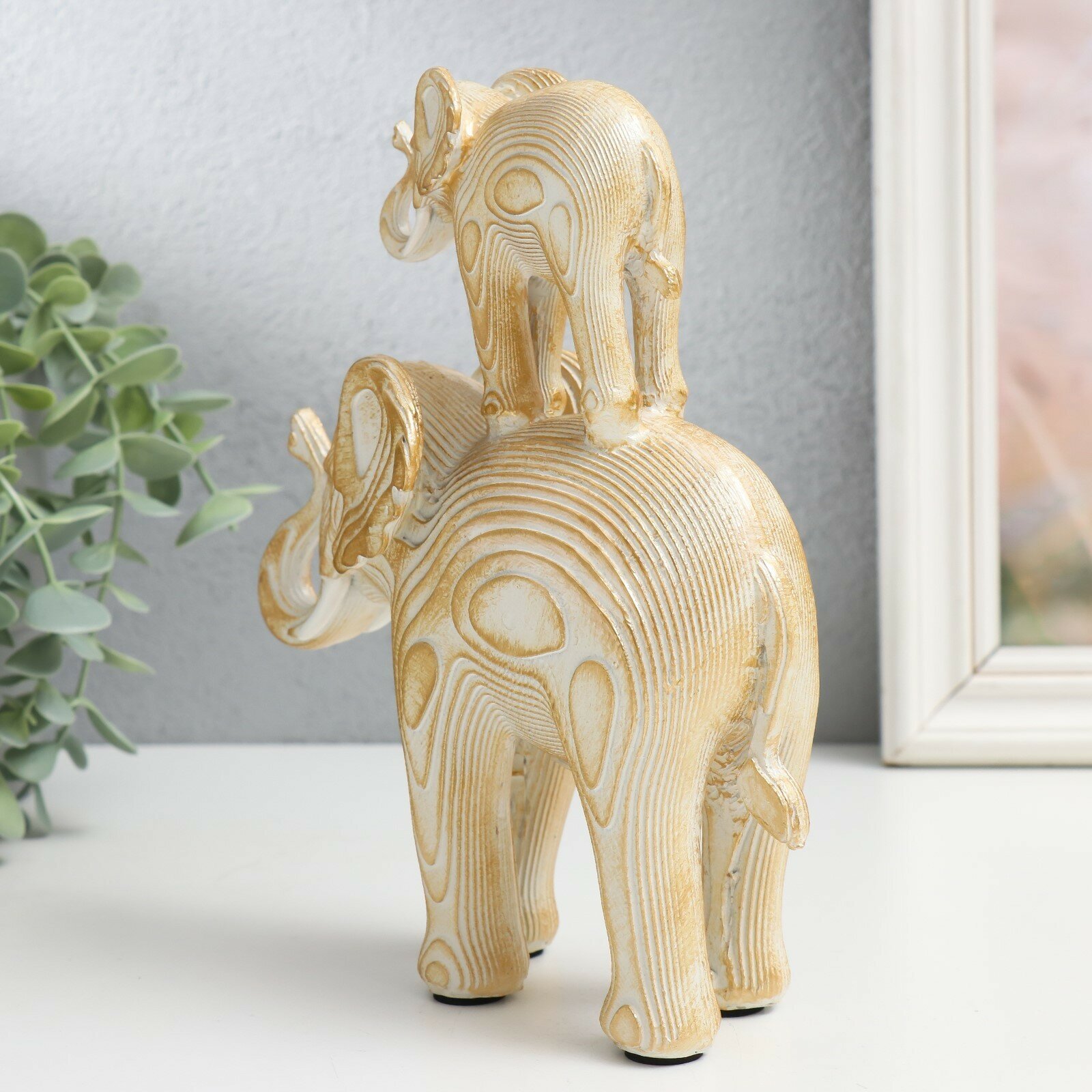 Сувенир полистоун "Белый слон со слонёнком на спине, с золотом - слои" 16х7х19,5 см информация: