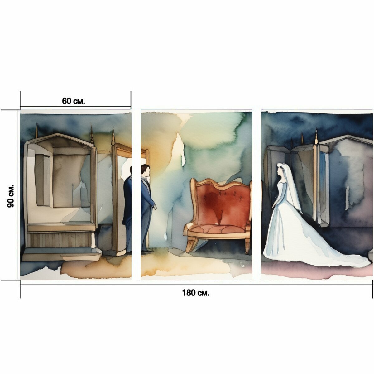 Модульный постер "Неравный брак тематика, в стиле акварель" 180 x 90 см. для интерьера на стену информация: