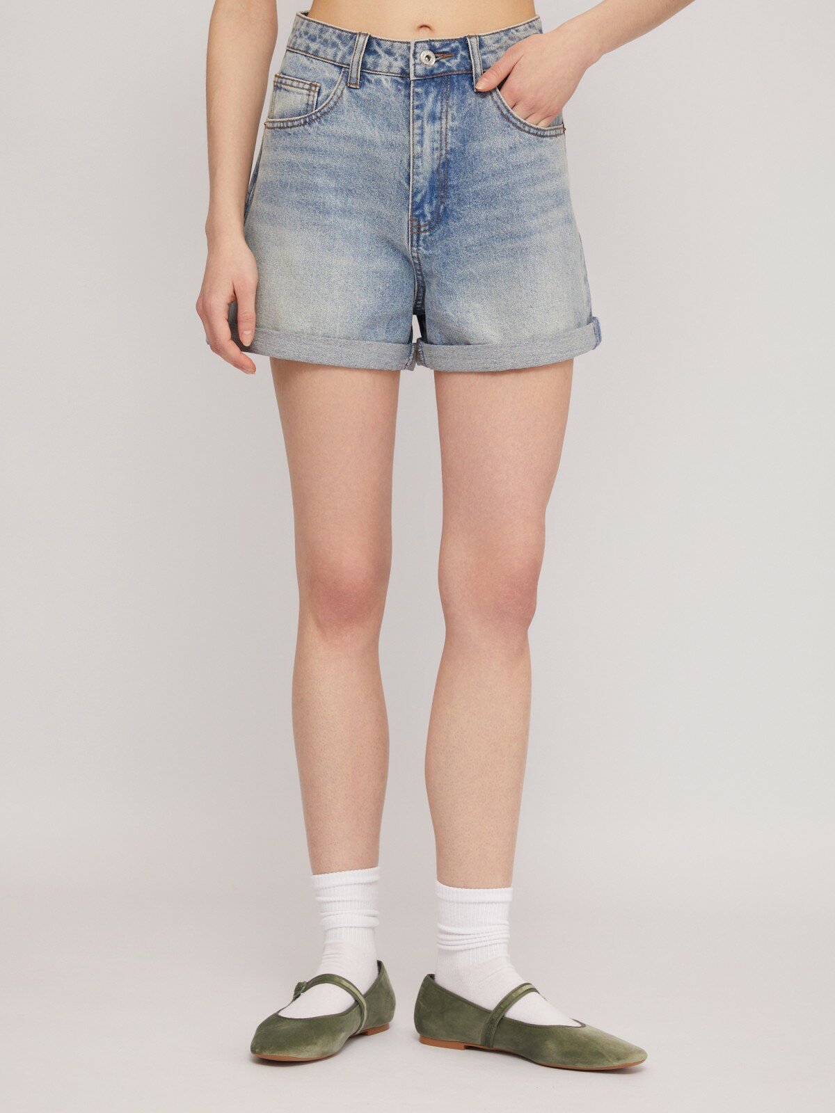 Джинсовые мини шорты из хлопка с отворотами, цвет Выстиранный синий, размер S 02425724S043 1 639 ₽