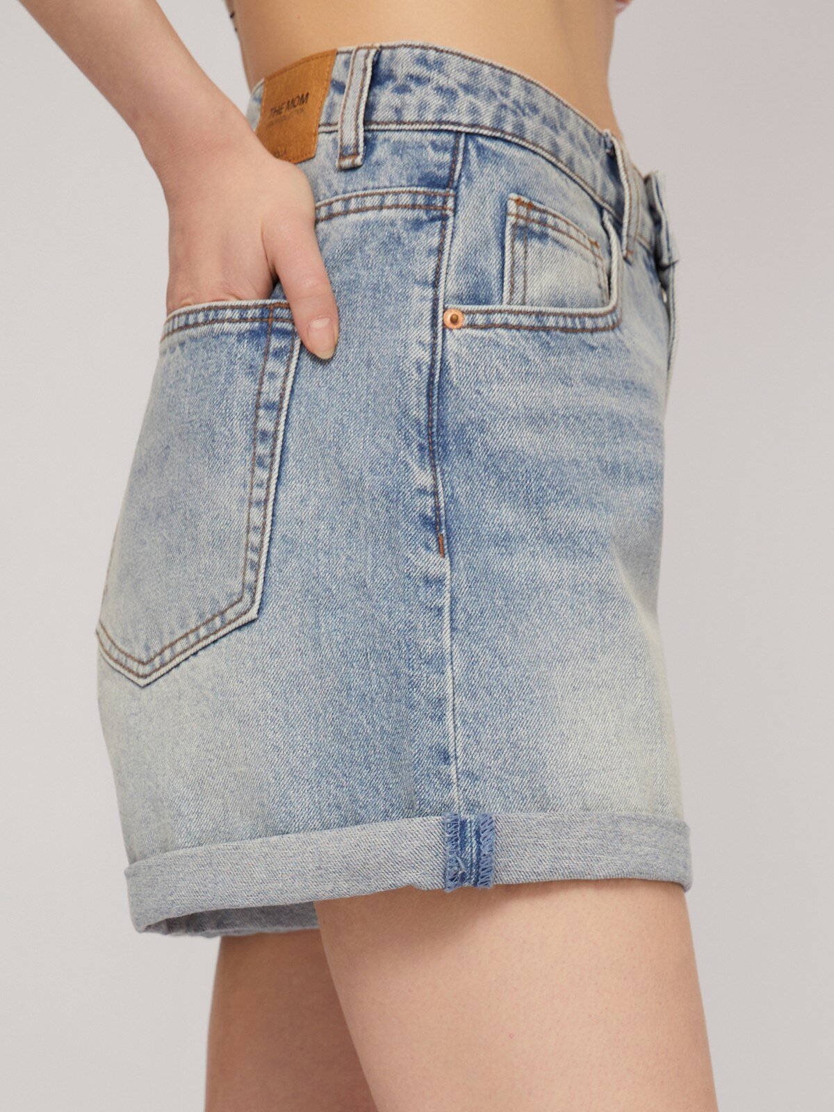 Джинсовые мини шорты из хлопка с отворотами, цвет Выстиранный синий, размер M 02425724S043 1 639 ₽