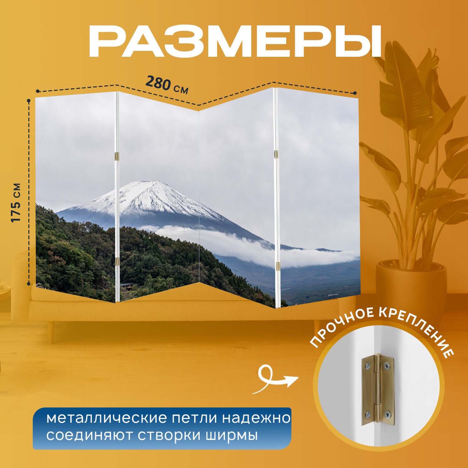 Ширма "Фудзи, япония, вулкан" раскладная перегородка для зонирования с принтом на холсте информация: