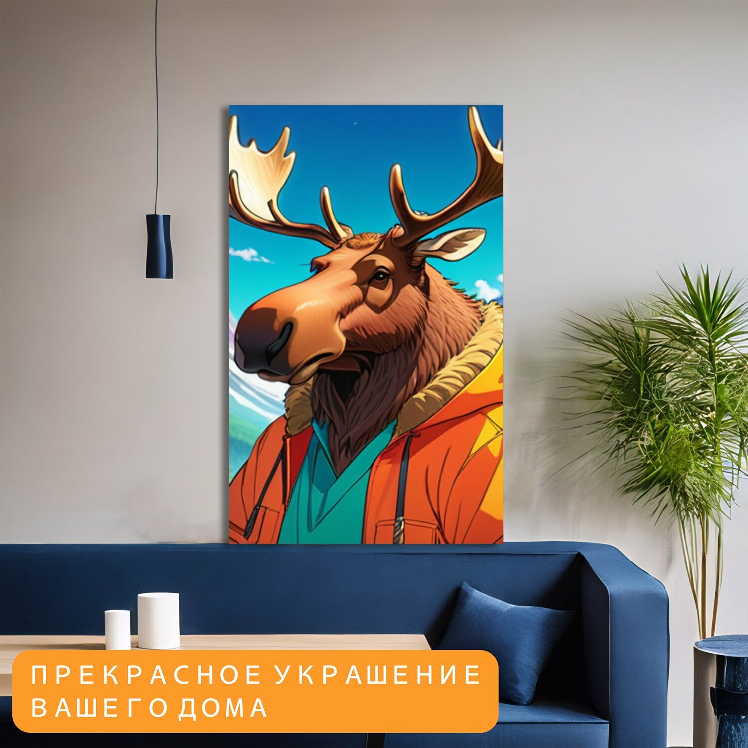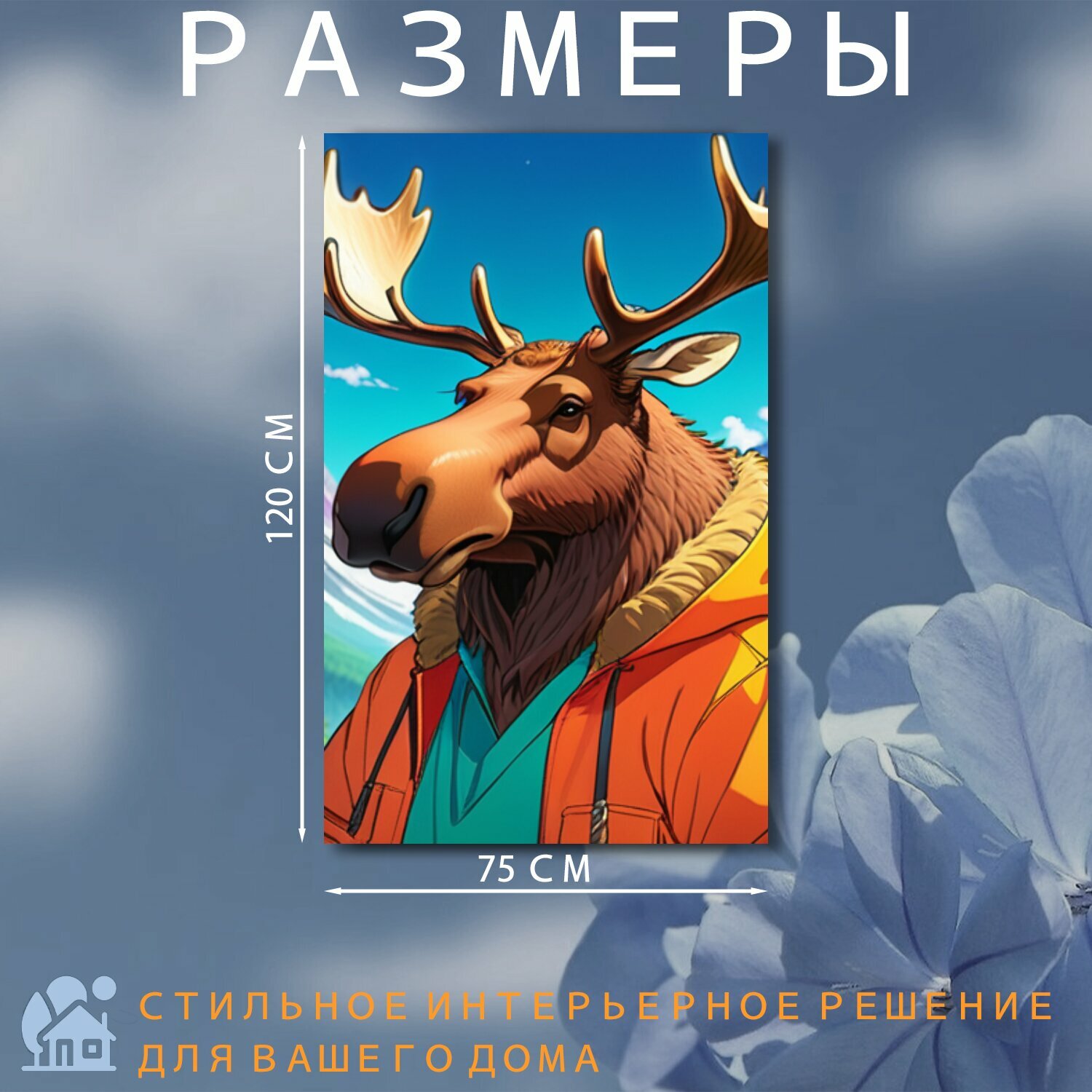 10 цен на Картина на холсте В детскую комнату "Животные, звери, лось " на подрамнике 75х120 см. для интерьера