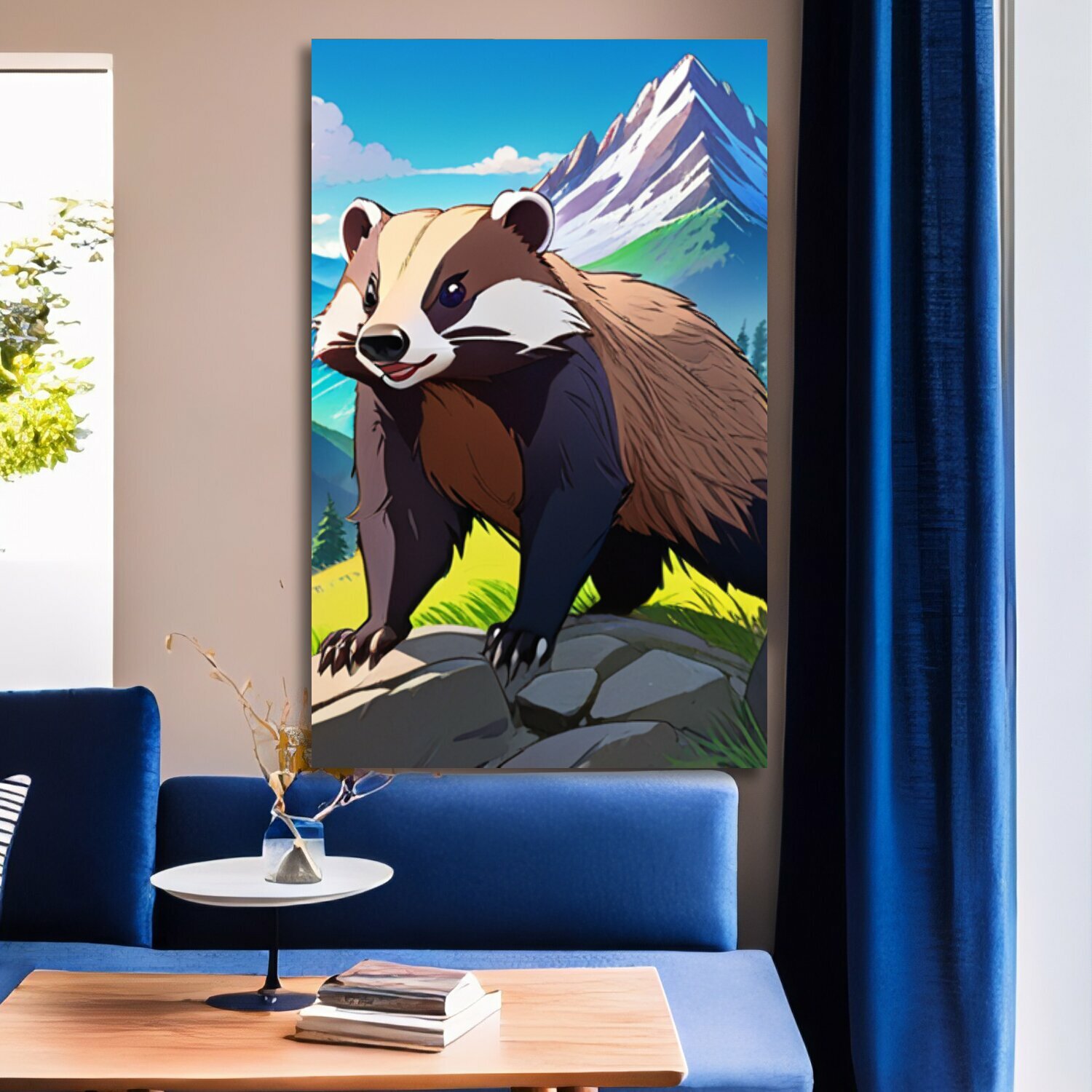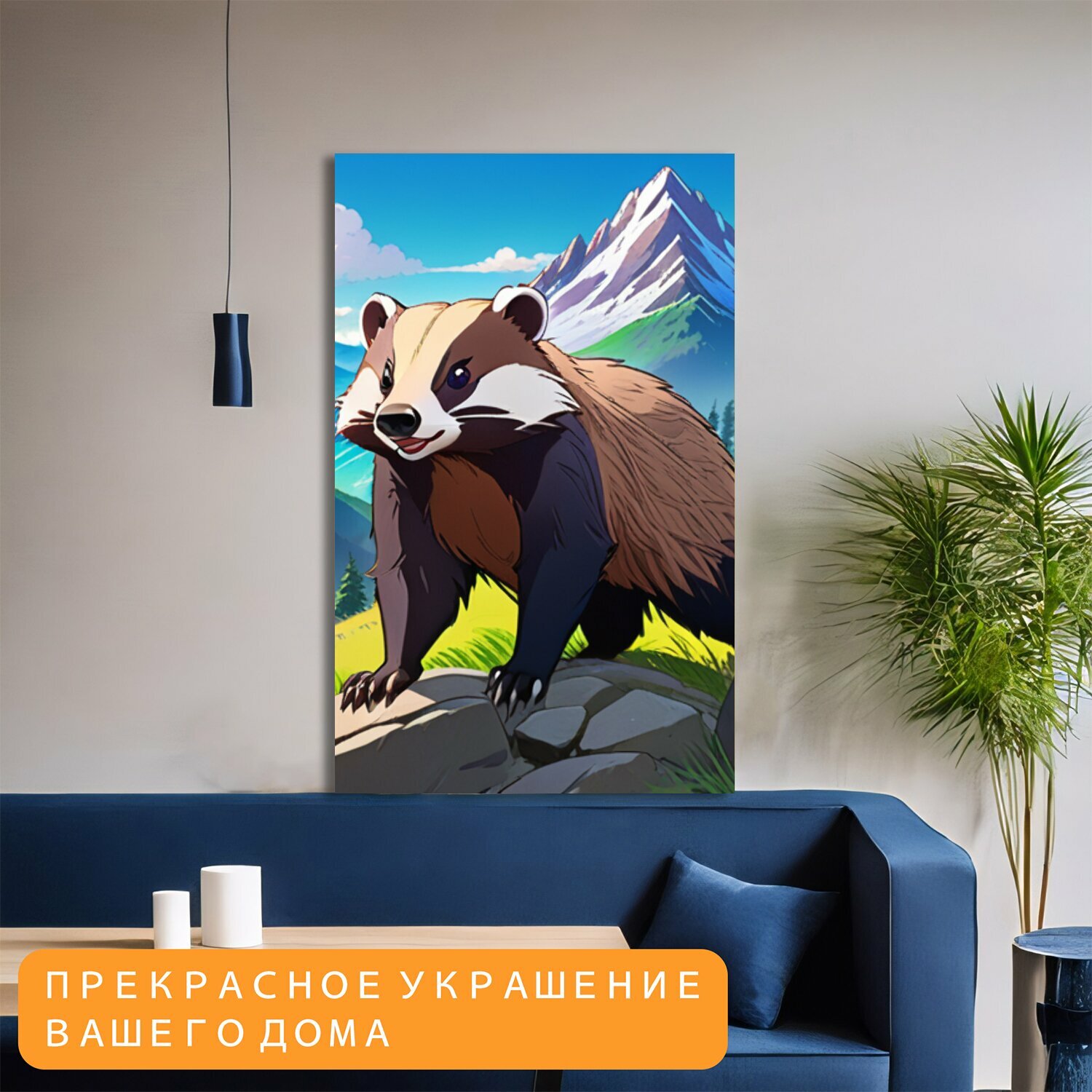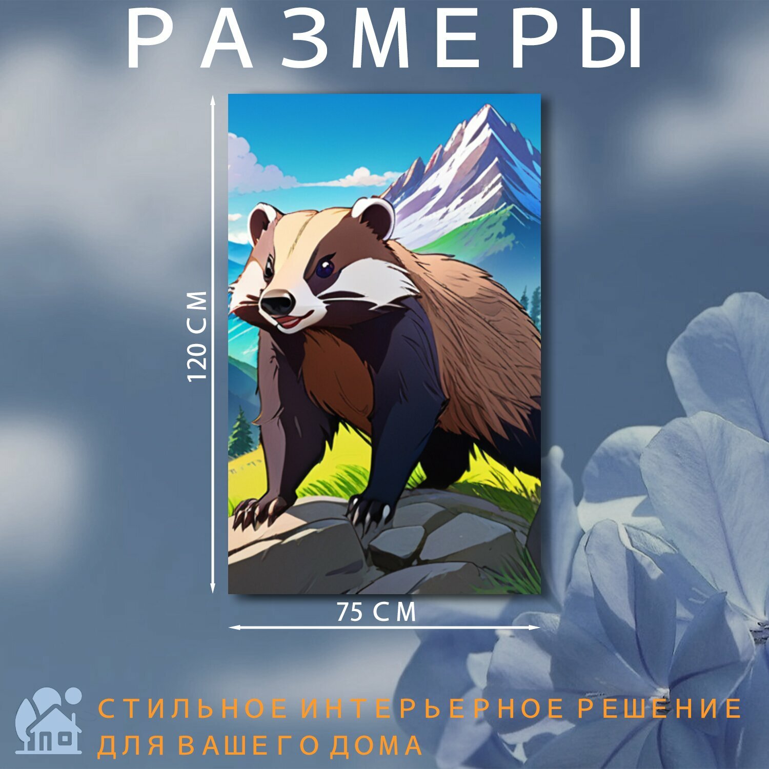 10 цен на Картина на холсте В детскую комнату "Животные, звери, барсук в горах" на подрамнике 75х120 см. для интерьера