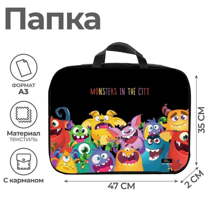 10 цен на Папка для чертежей и рисунков А3, 470 х 350 х 20 мм, с ручками, текстильная, Calligrata "Монстрики"