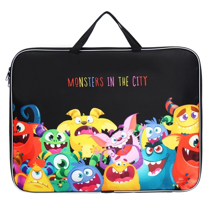 Отзывы на Папка для чертежей и рисунков А3, 470 х 350 х 20 мм, с ручками, текстильная, Calligrata "Монстрики"