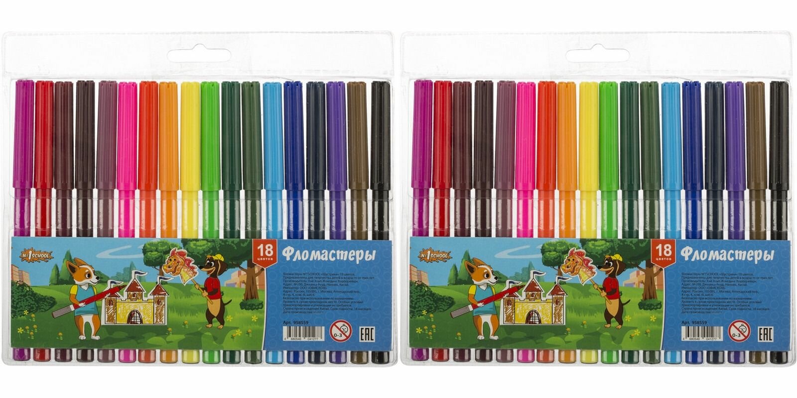 10 цен на №1 School Фломастеры Шустрики 18 цветов, 2 уп