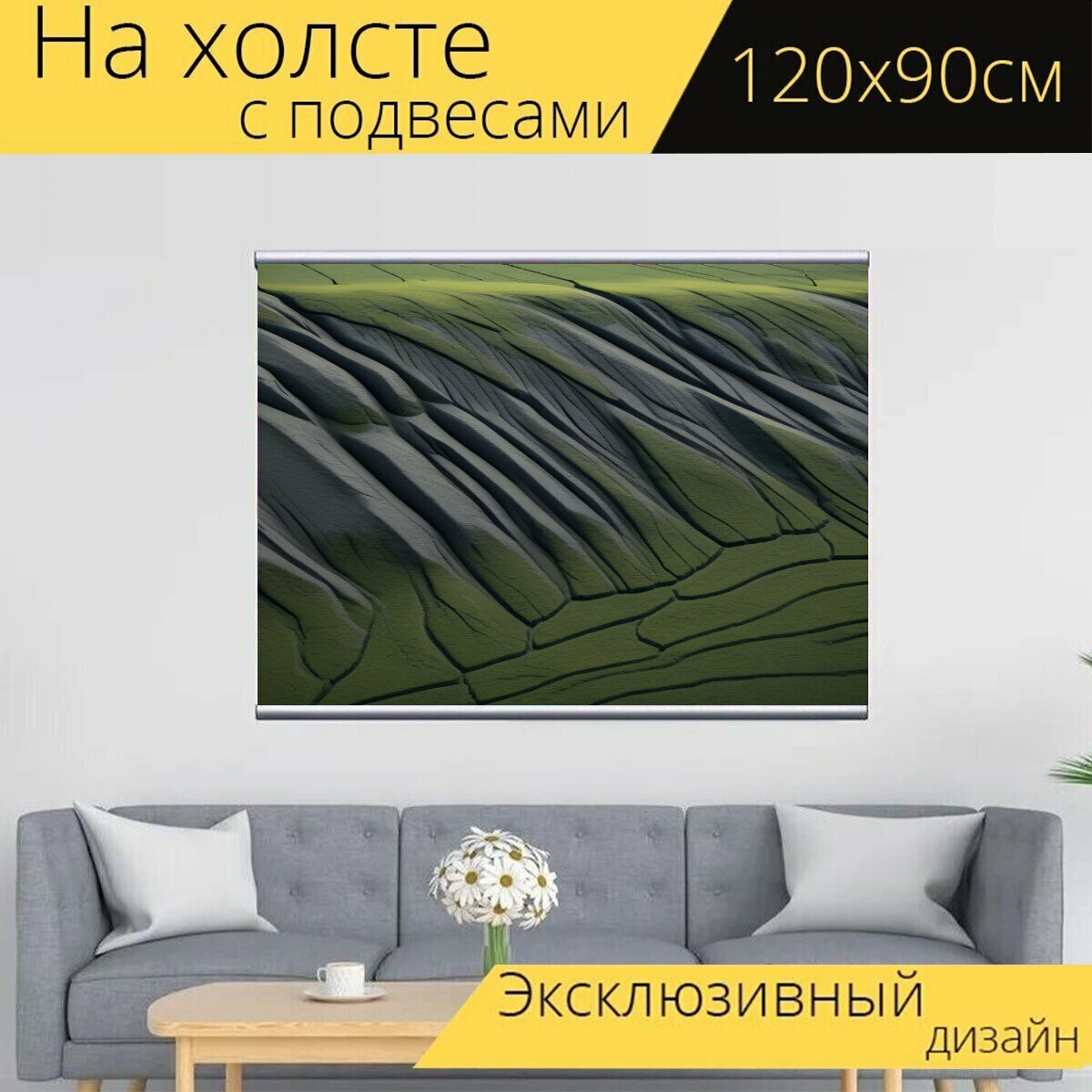 10 цен на Картина на холсте "Пейзаж с низкой минимал, " с подвесами 120х90 см. для интерьера на стену