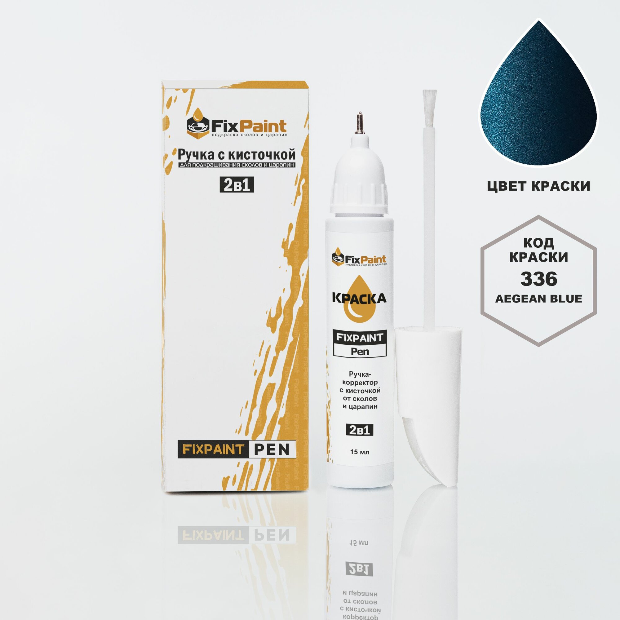 Подкраска BMW 3, код 336, P5A, MEXICO BLUE, ручка-корректор с кисточкой 2 в 1 FixPaint Pen 15 мл, эмаль для ремонта сколов и царапин информация:
