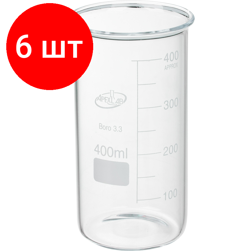10 цен на Комплект 6 штук, Стакан лабораторный В-1-400 ТС, с дел., ГОСТ 23932-90 Apexlab