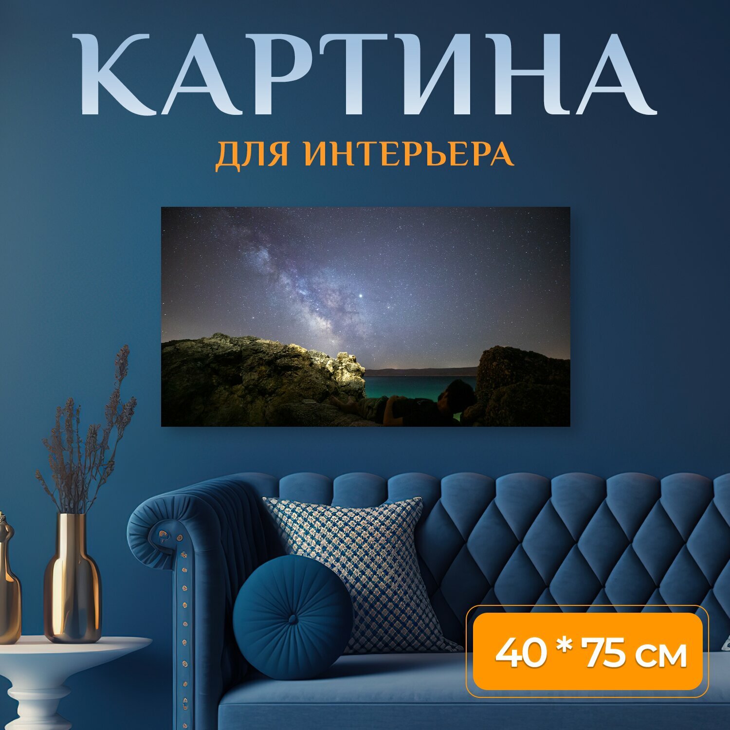 Картина на холсте "Млечный путь, звезды, вечер" на подрамнике 75х40 см. для интерьера информация: