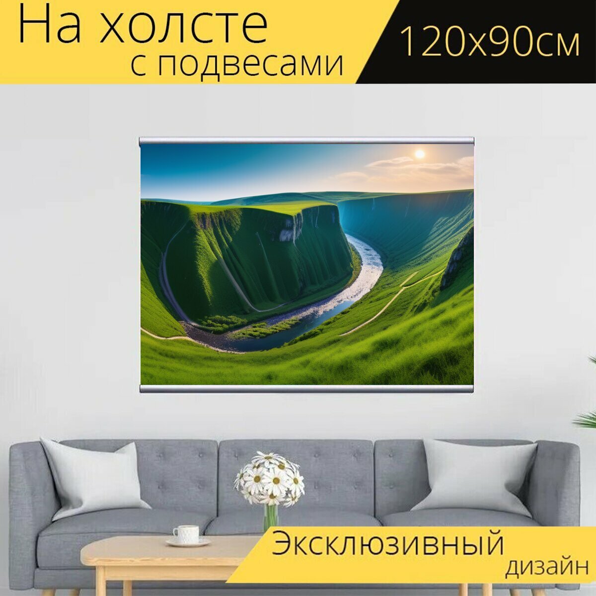 10 цен на Картина на холсте "Пейзаж с криком смешной, " с подвесами 120х90 см. для интерьера на стену