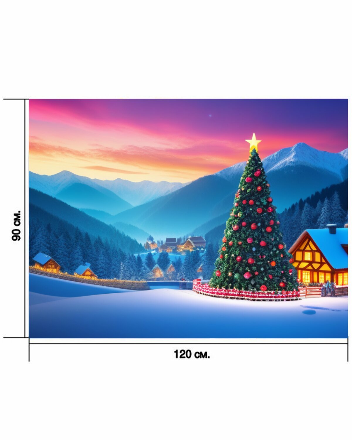 Картина на холсте "Пейзаж с рождеством вдохновляющий, " с подвесами 120х90 см. для интерьера на стену информация: