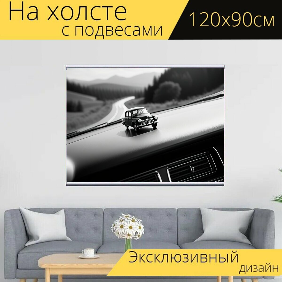 10 цен на Картина на холсте "Пейзаж с автомобилем чернобелый, " с подвесами 120х90 см. для интерьера на стену
