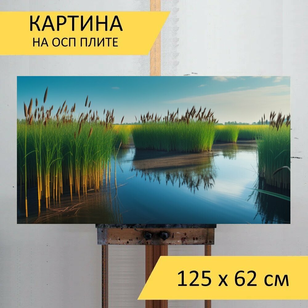 Картина на ОСП "Пейзаж с камышами красивый, " 125x62 см. для интерьера на стену информация: