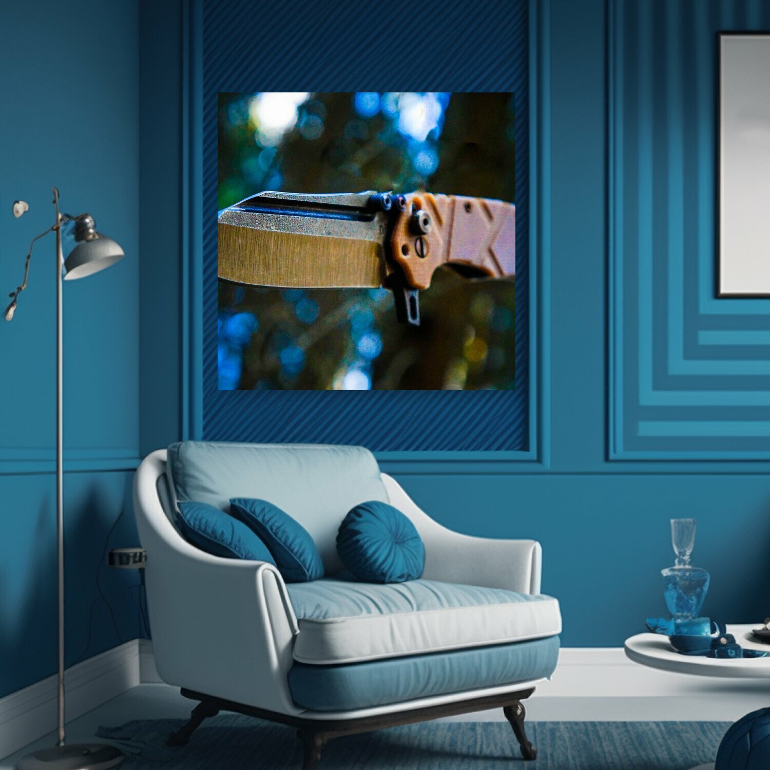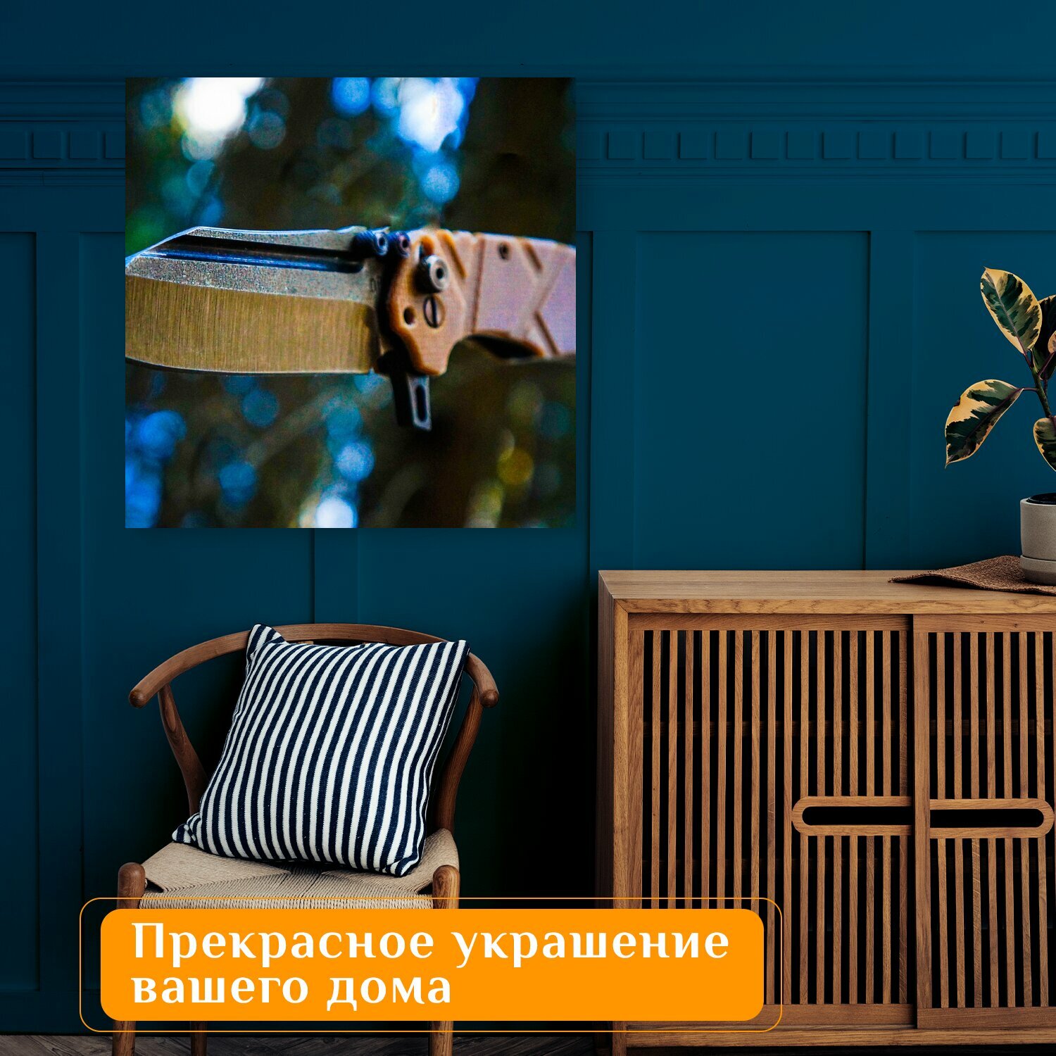 10 цен на Картина на холсте "Нож, лес, грибоед" на подрамнике 75х75 см. для интерьера