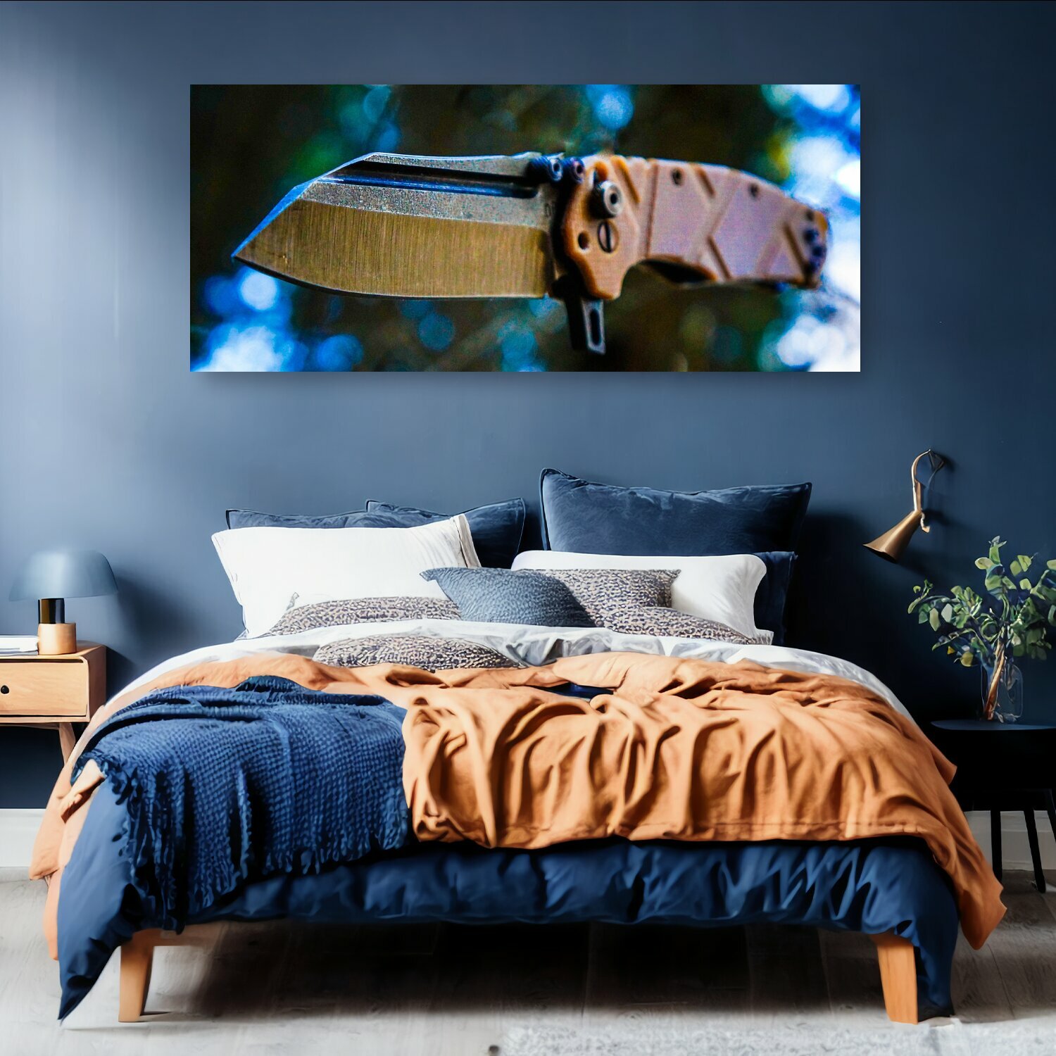 10 цен на Картина на холсте "Нож, лес, грибоед" на подрамнике 175х75 см. для интерьера