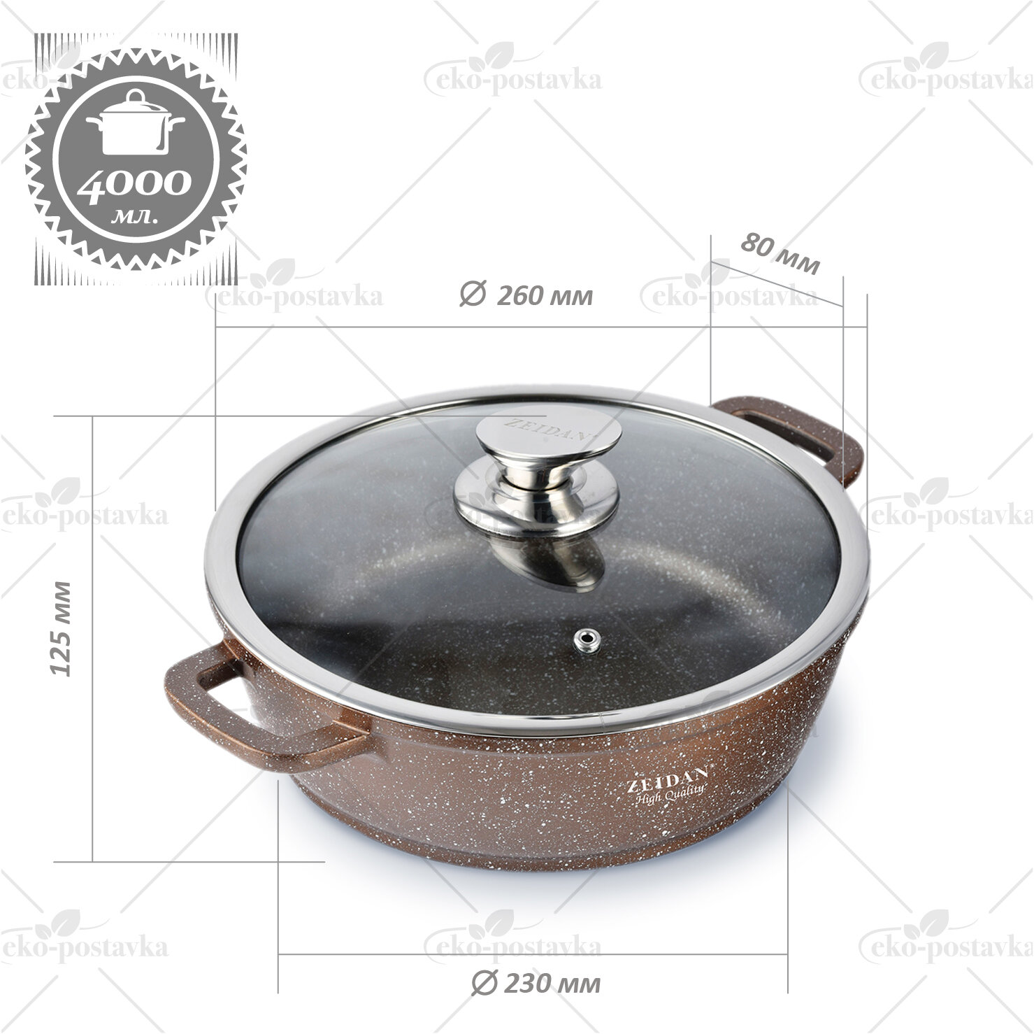 Жаровня с крышкой 26 см Zeidan сотейник с антипригарным покрытием 4 л сковорода для газовых электрических и индукционных плит информация: