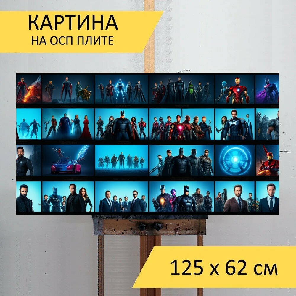 10 цен на Картина на ОСП "С киногероями легкий, " 125x62 см. для интерьера на стену