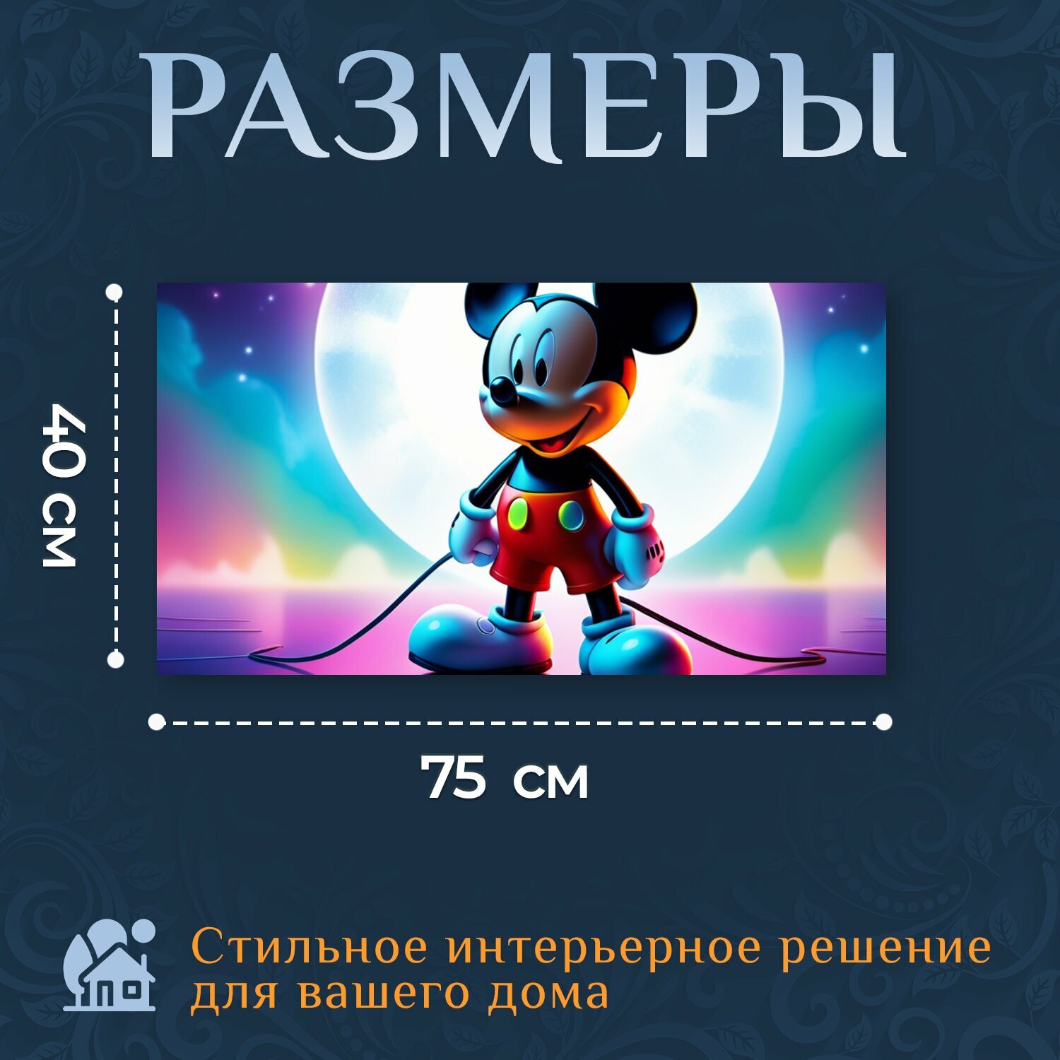 Картина на холсте "С микки , " на подрамнике 75х40 см. для интерьера информация: