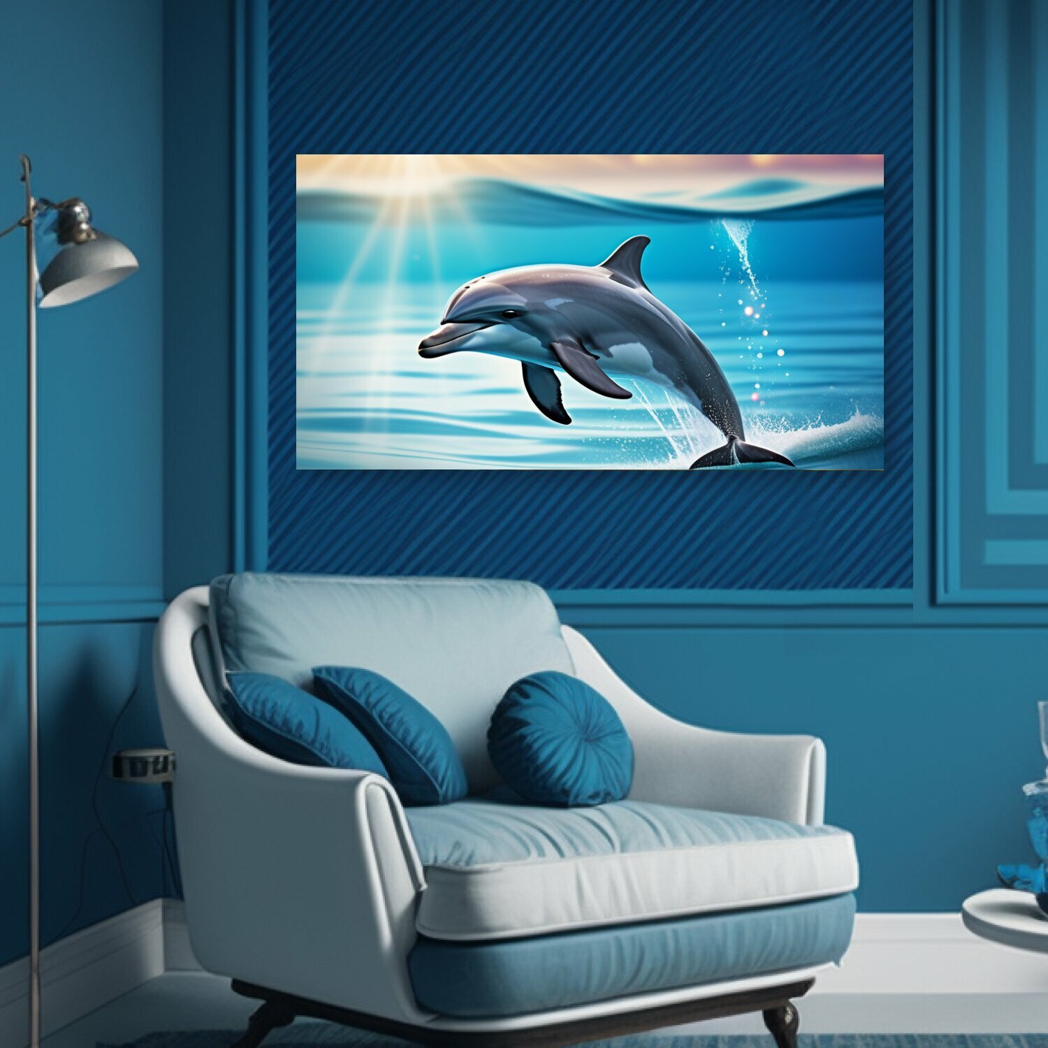 Картина на холсте "С дельфином смешной, " на подрамнике 75х40 см. для интерьера информация:
