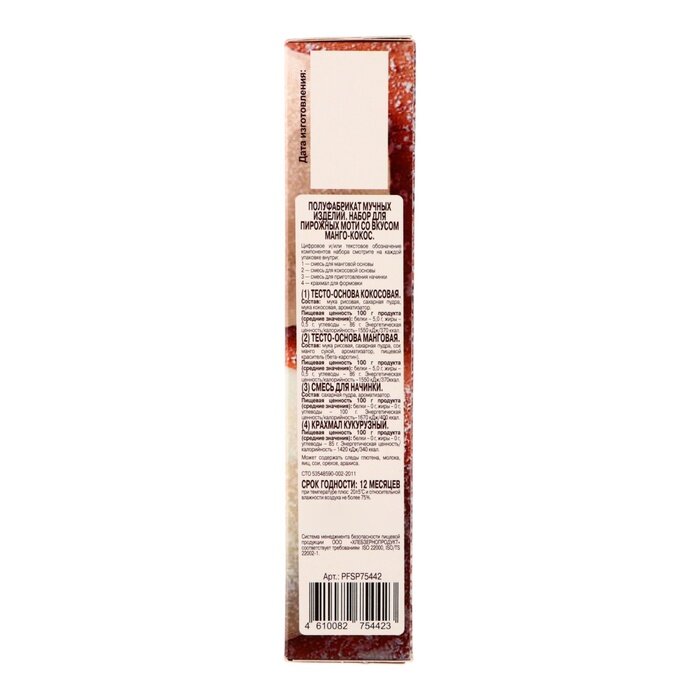 Набор для пирожных моти со вкусом манго-кокос С.Пудовъ, картон ритейл, 0,225 кг (гофро 4 шт. 1065331 информация:
