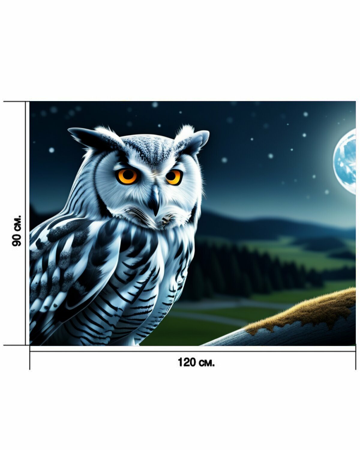 Картина на холсте "Пейзаж с совами легкий, " с подвесами 120х90 см. для интерьера на стену информация: