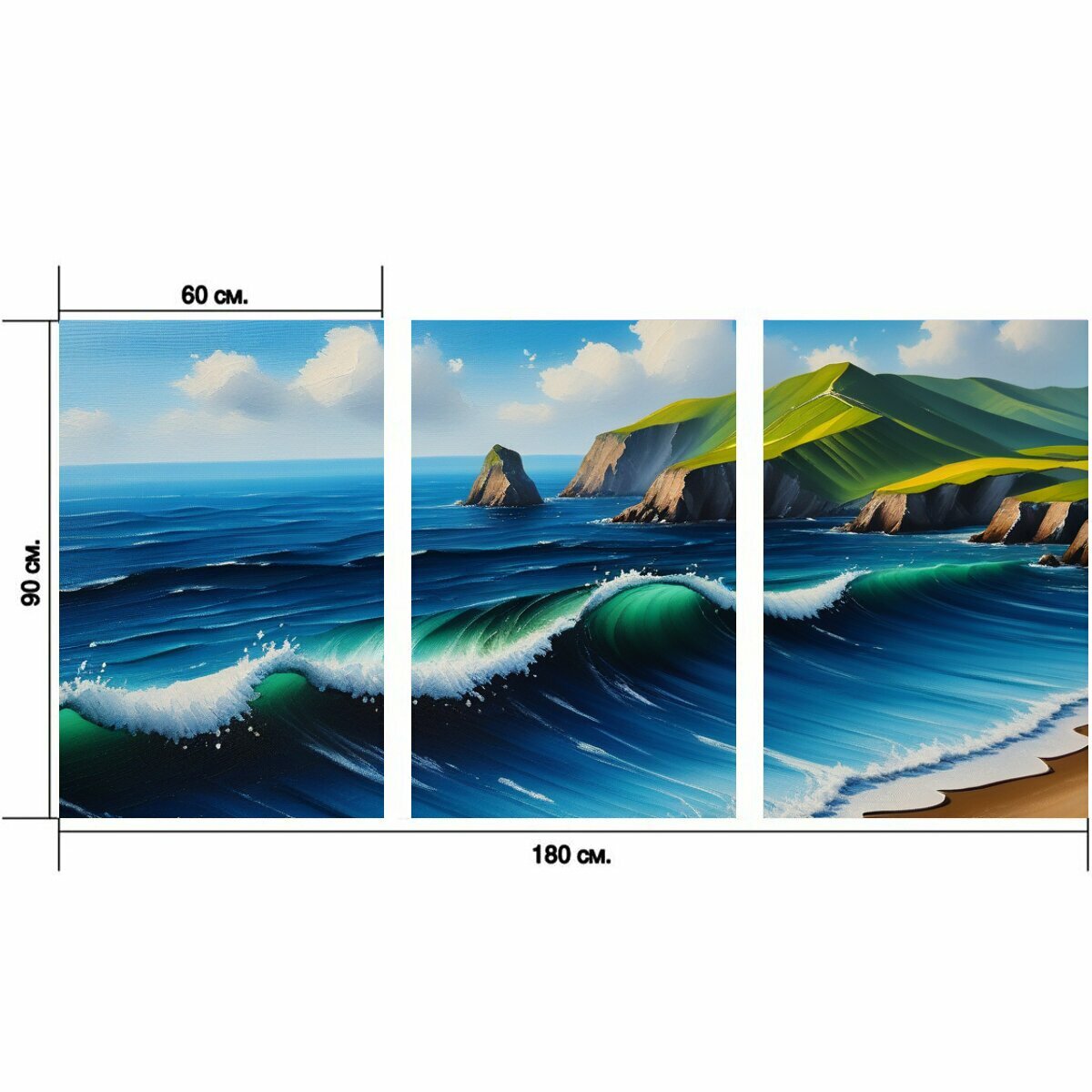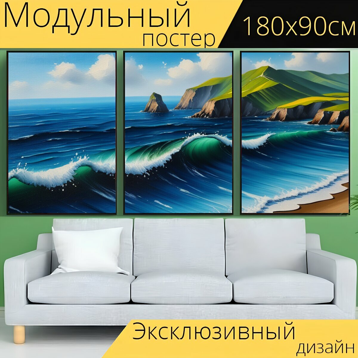 Модульный постер "Пейзаж с морем масло, " 180 x 90 см. для интерьера на стену информация: