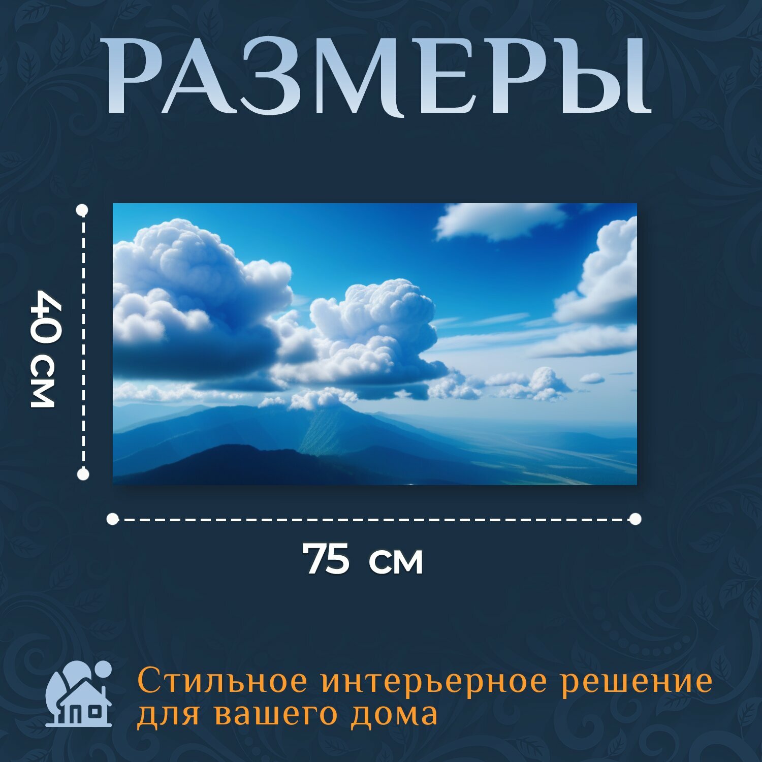 Картина на холсте "Пейзаж с облаками картины крутой, " на подрамнике 75х40 см. для интерьера информация: