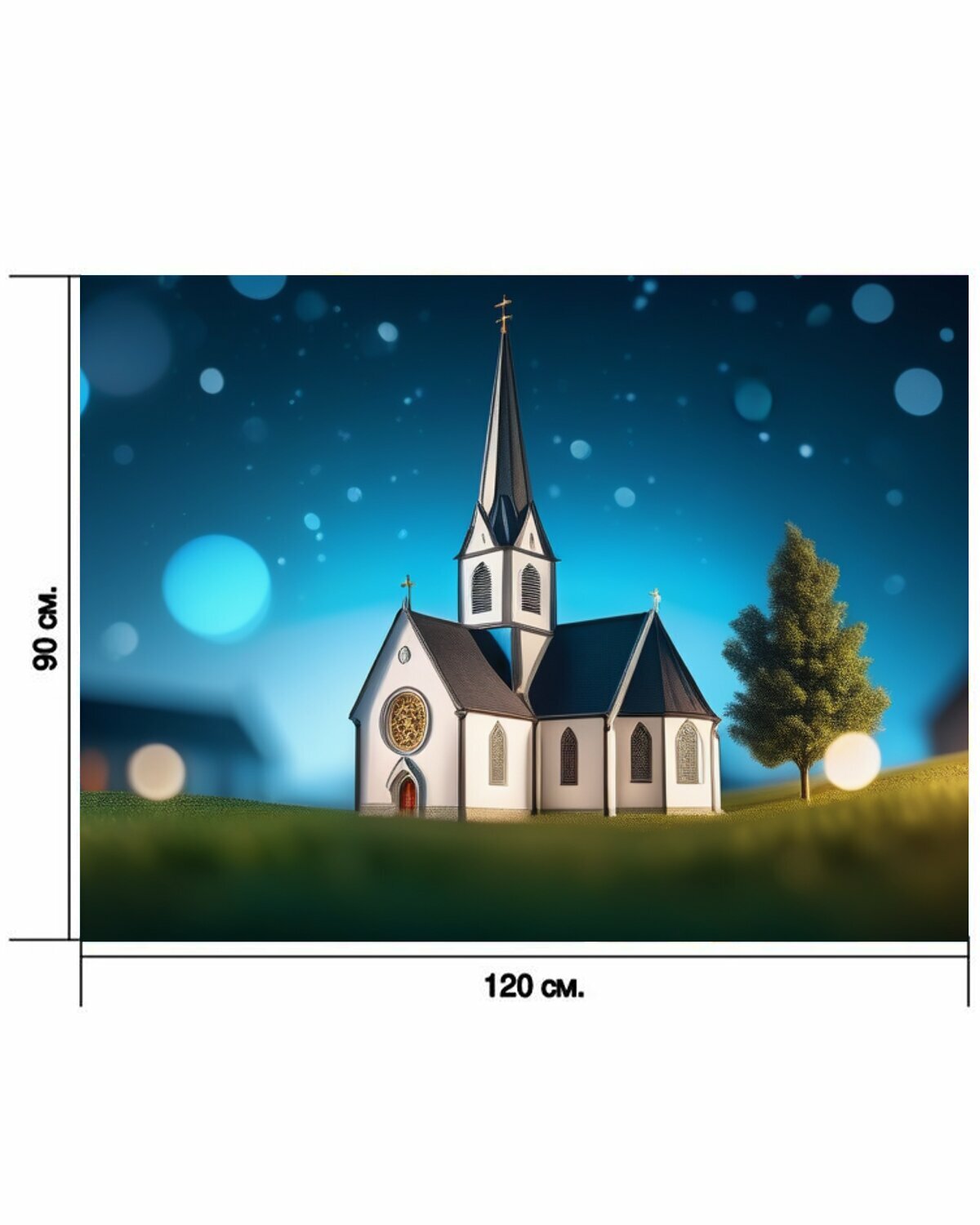 Картина на холсте "Рисунки пейзаж с церковью легкий, " с подвесами 120х90 см. для интерьера на стену информация:
