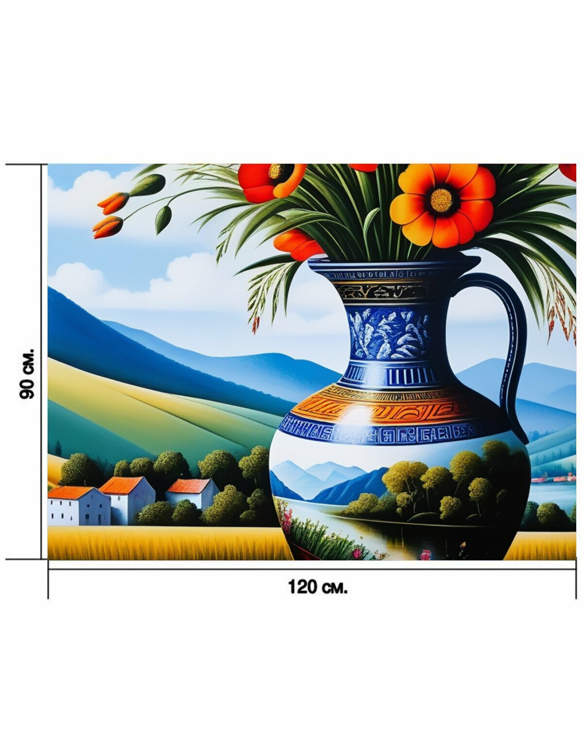 Картина на холсте "Пейзаж с вазой живопись максимал, " с подвесами 120х90 см. для интерьера на стену информация:
