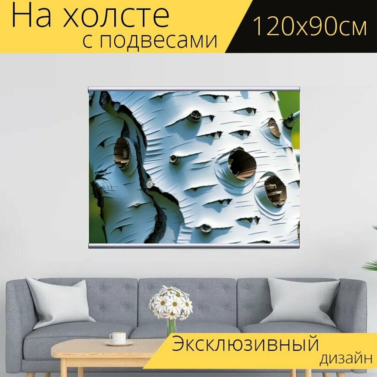 Картина на холсте "Фото пейзаж с березой крутой, " с подвесами 120х90 см. для интерьера на стену информация: