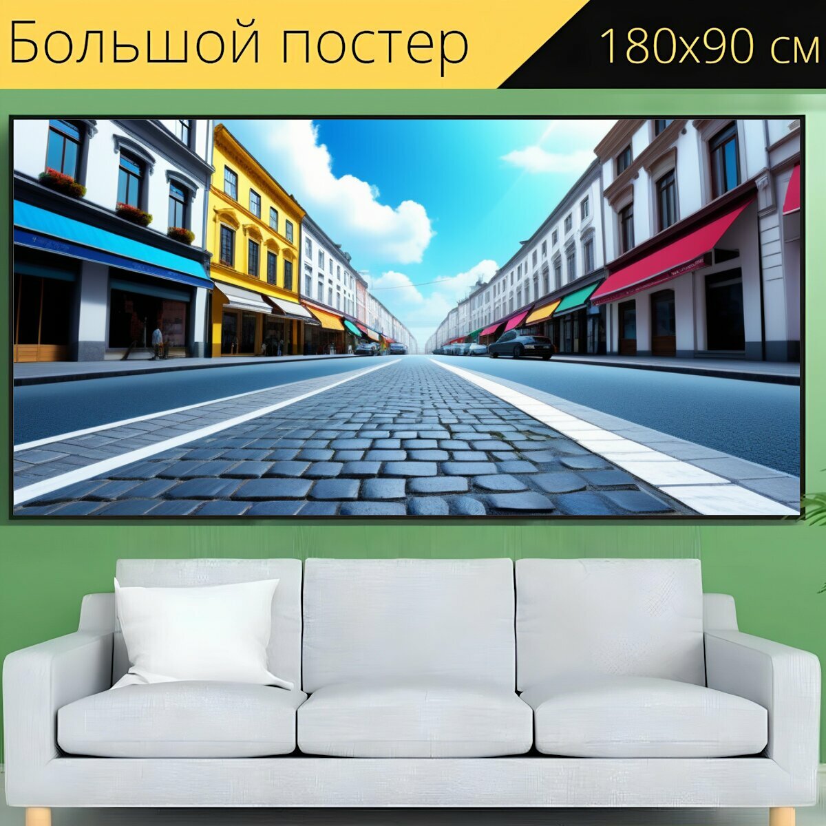 Большой постер "Пейзаж с перспективой улица красивый, " 180 x 90 см. для интерьера на стену информация: