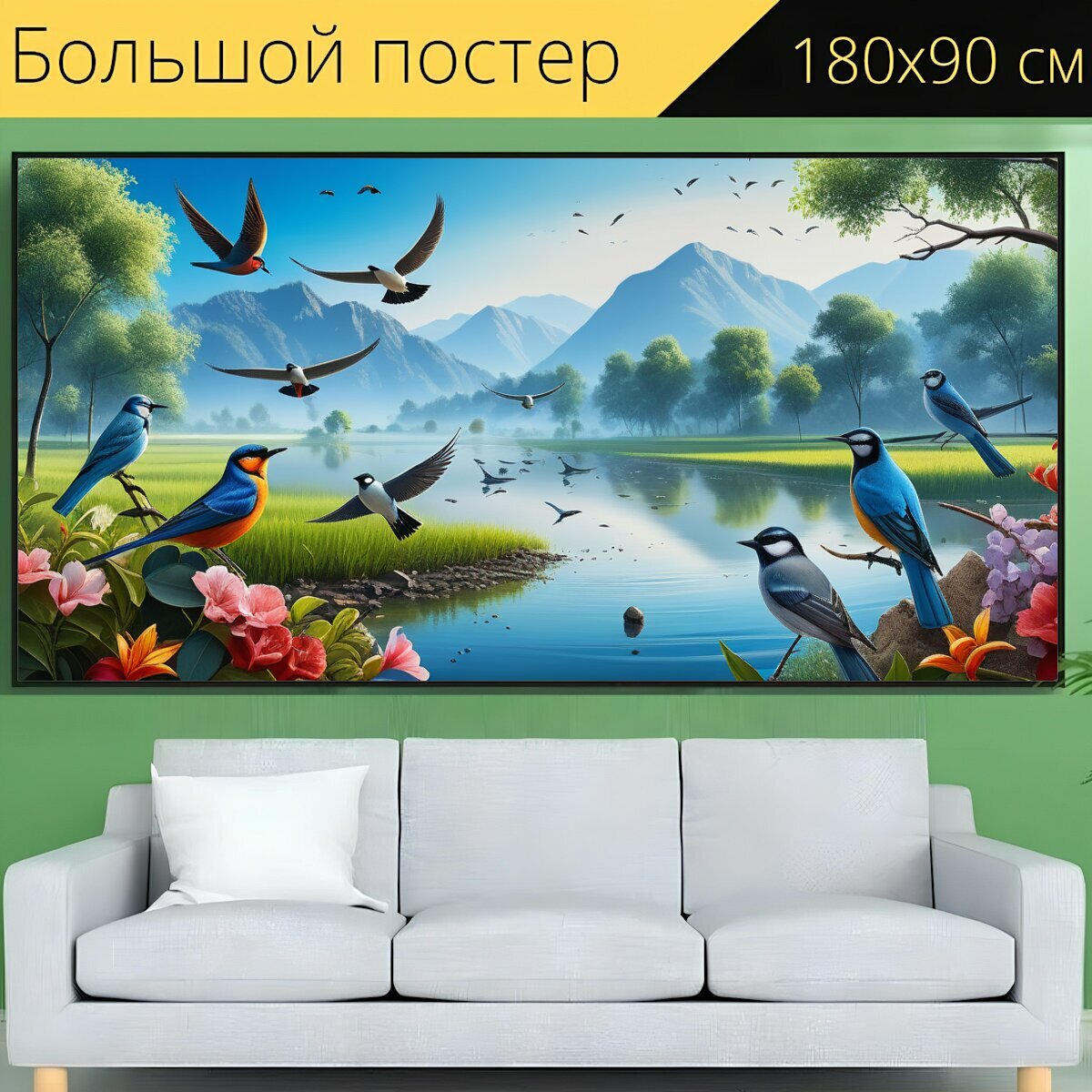 Отзывы на Большой постер "Красивый пейзаж с птицами , " 180 x 90 см. для интерьера на стену