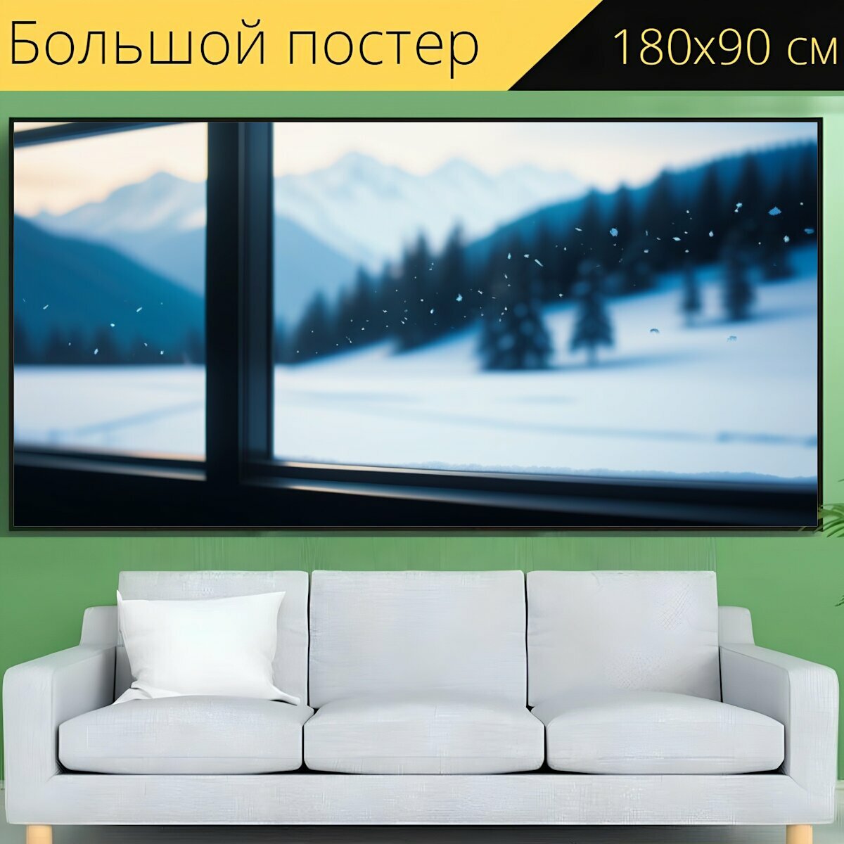 Большой постер "Пейзаж с окна зимний минимал, " 180 x 90 см. для интерьера на стену информация: