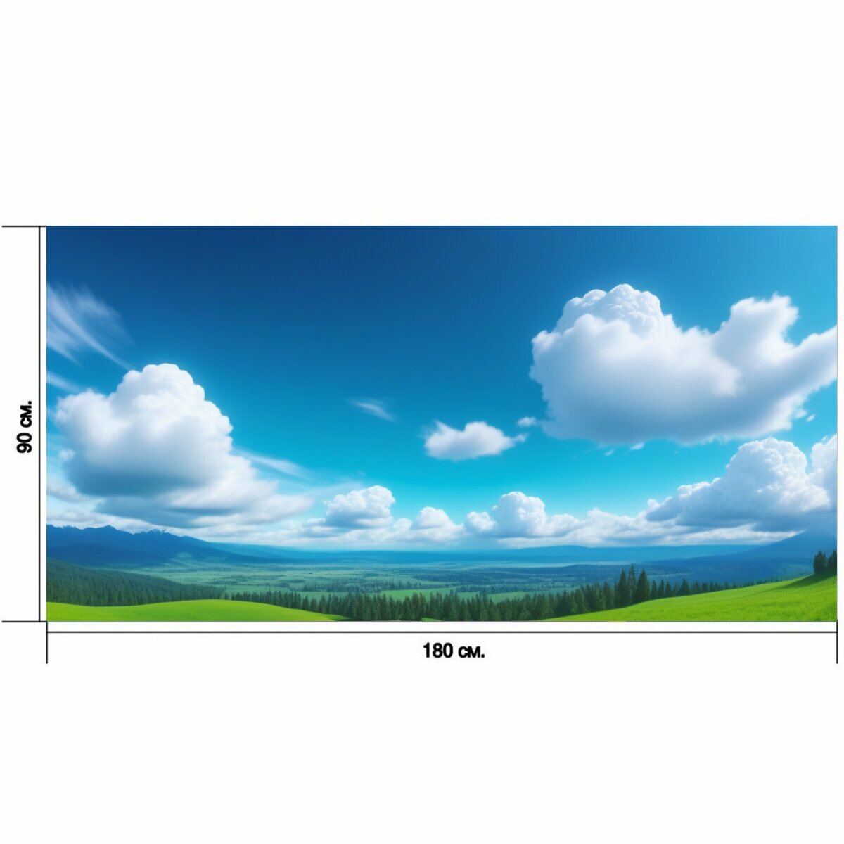 Большой постер "Пейзаж с облаками нарисовать смешной, " 180 x 90 см. для интерьера на стену информация: