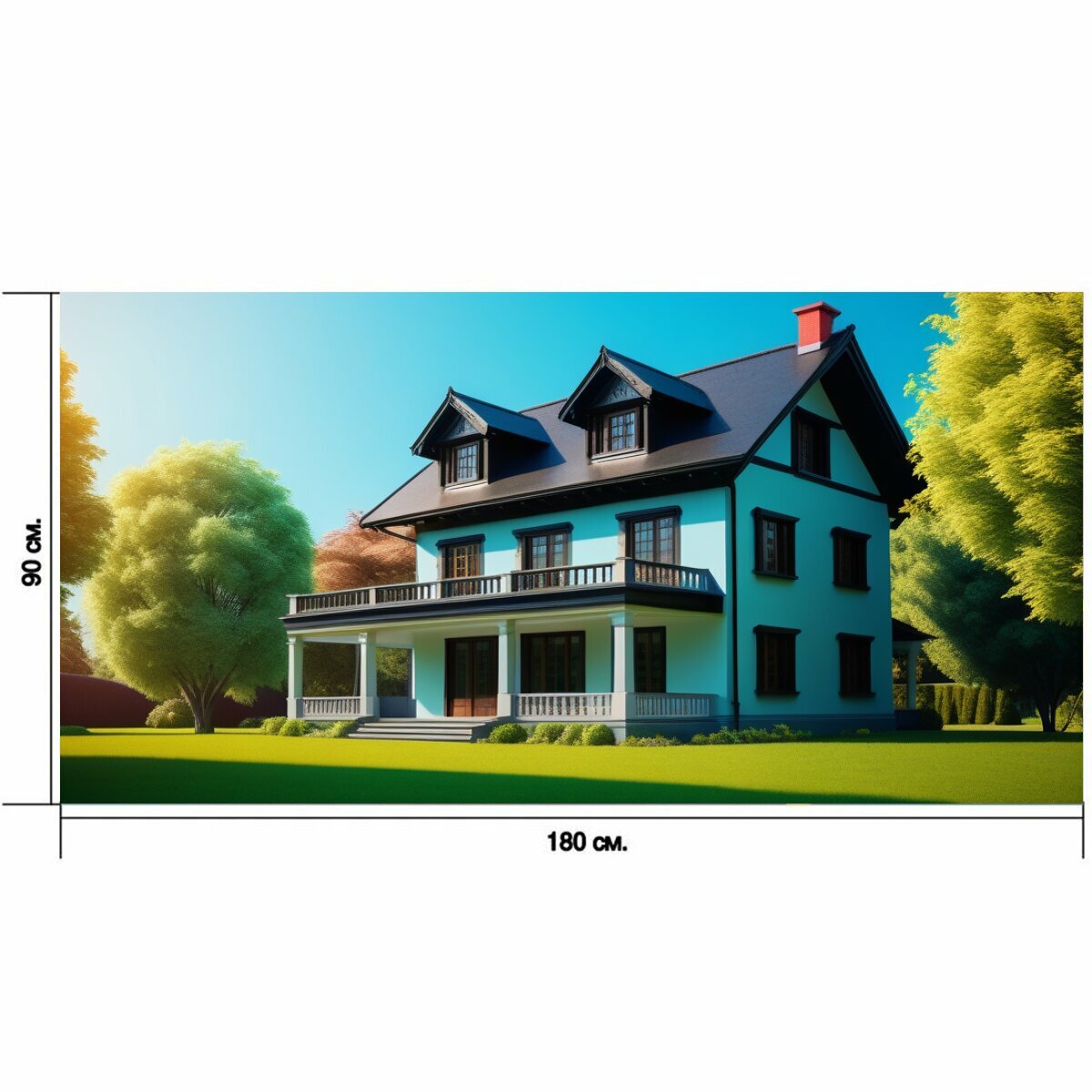 Большой постер "Пейзаж с домом графика красивый, " 180 x 90 см. для интерьера на стену информация: