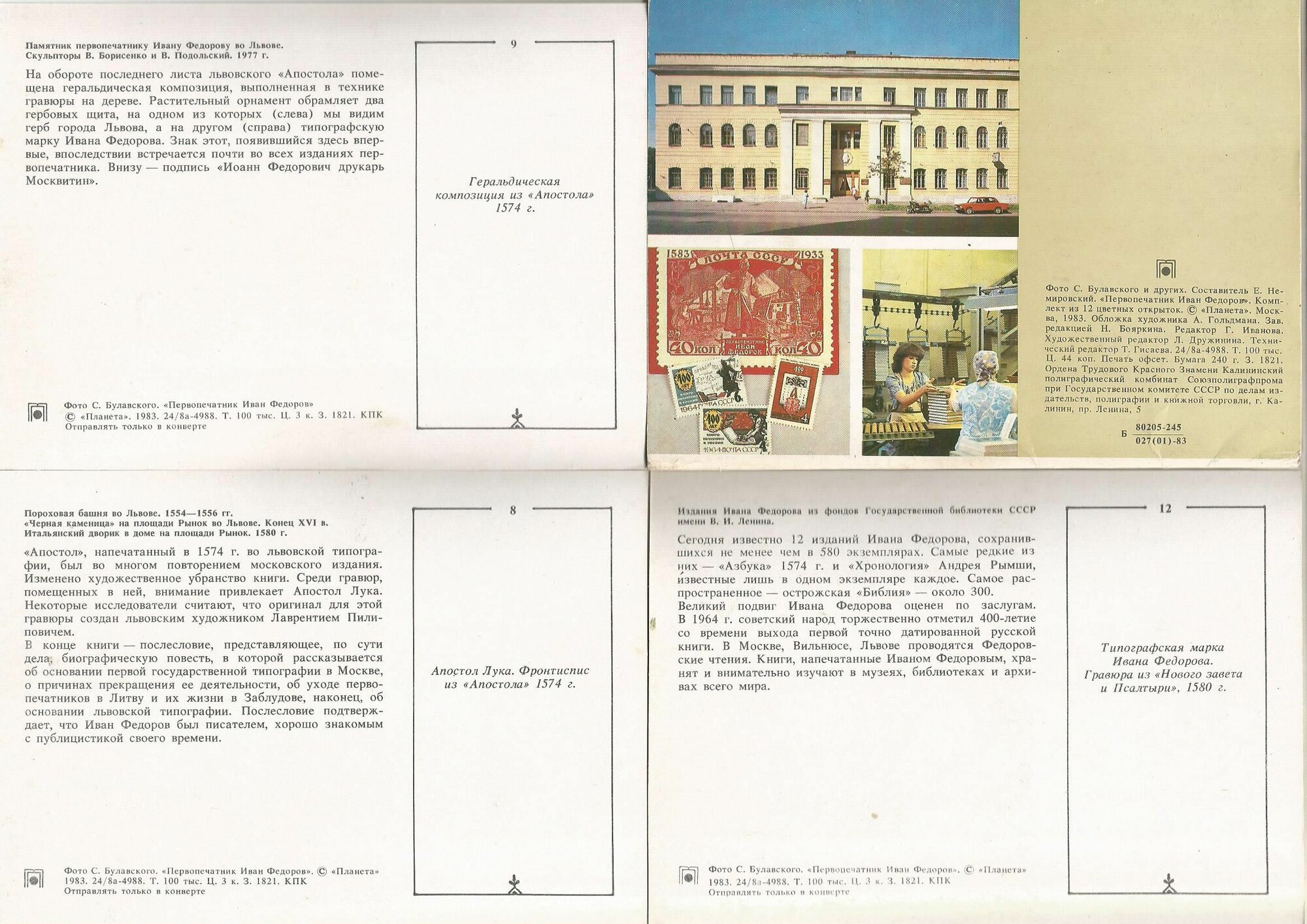 Набор открыток СССР 1978 год. Личности, Первопечатник Иван Федоров. Чистые, полный комплект 12 штук. информация: