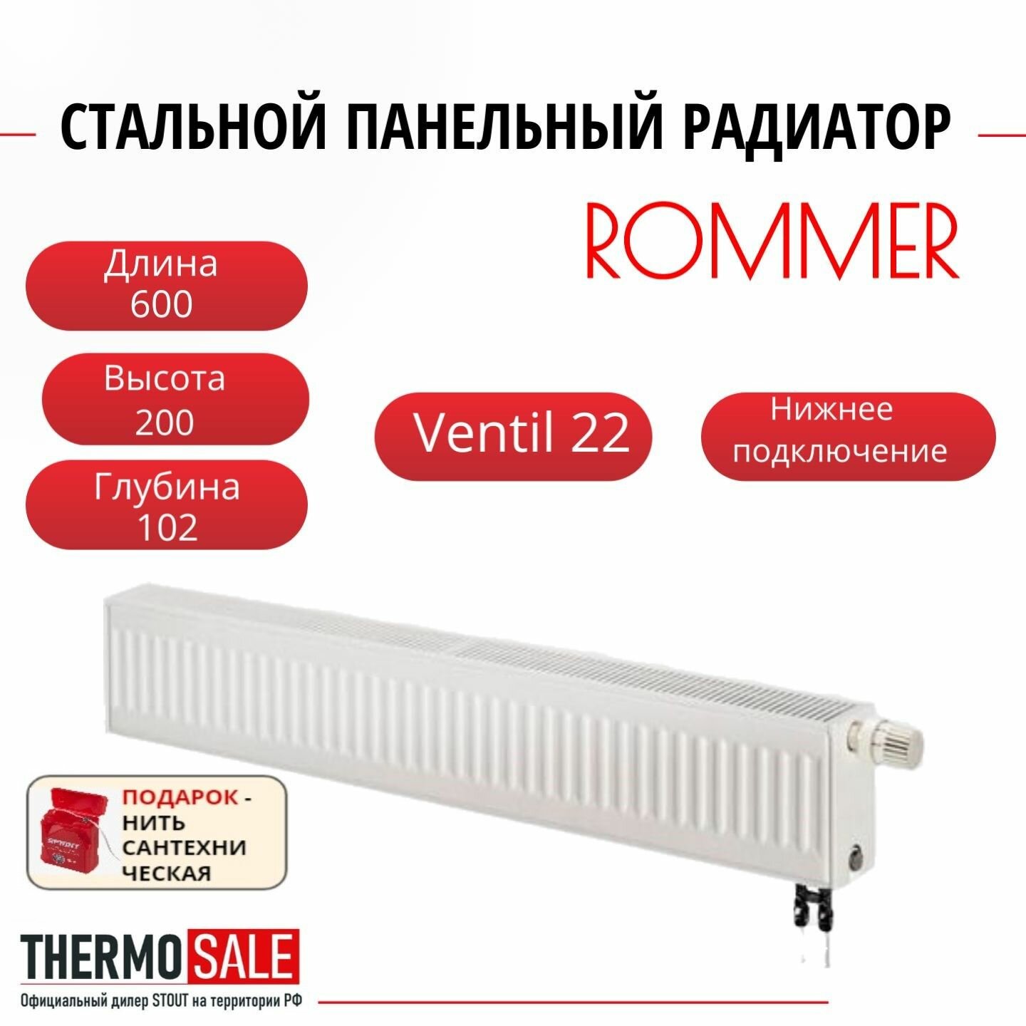 Радиатор стальной панельный ROMMER 200х600 нижнее подключение Ventil 22/200/600 Сантехническая нить информация: