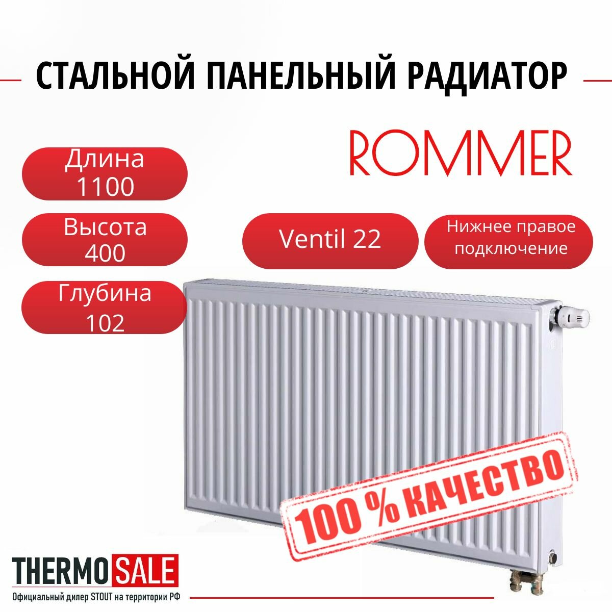 Отзывы на Радиатор стальной панельный ROMMER 400х1100 нижнее правое подключение Ventil 22/400/1100 Нить сантехническая