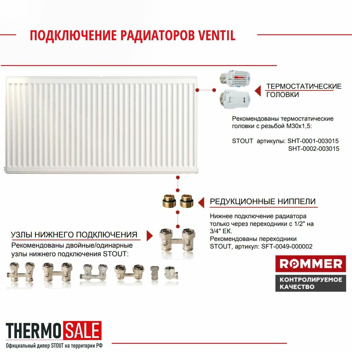 10 цен на Радиатор стальной панельный ROMMER 600х1800 нижнее правое подключение Ventil 22/600/1800 Нить сантехническая