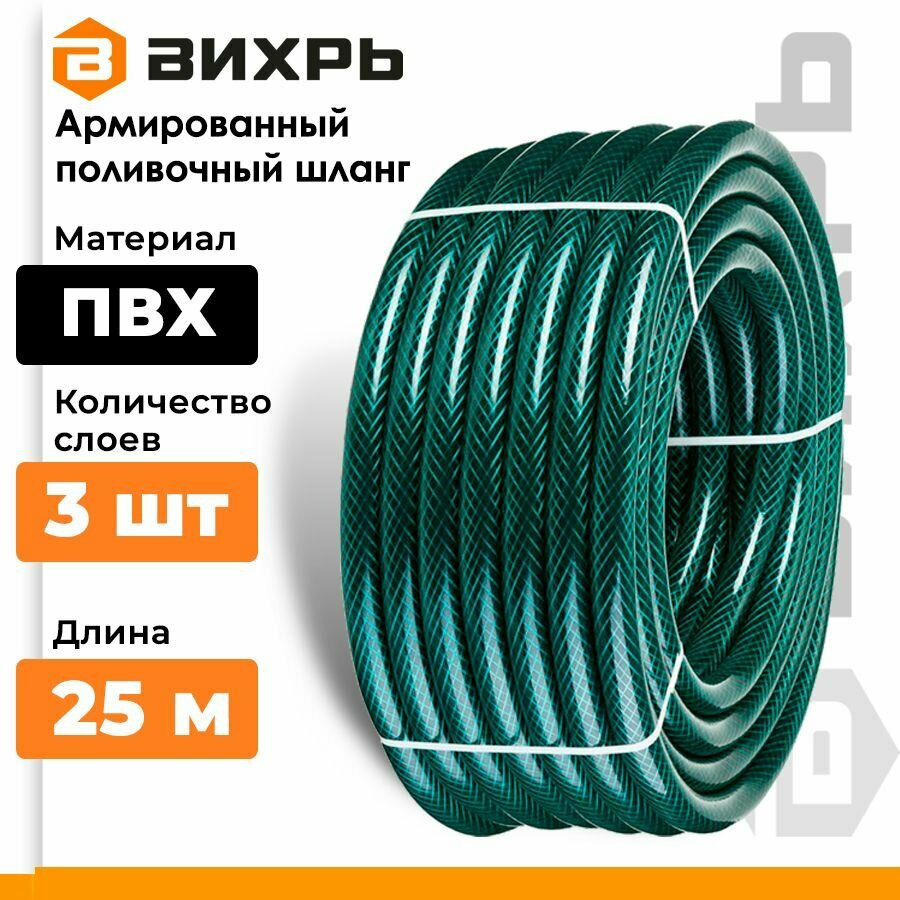 10 цен на Шланг поливочный Вихрь ПВХ, трёхслойный армированный 3/4", 25м, 73/7/2/1