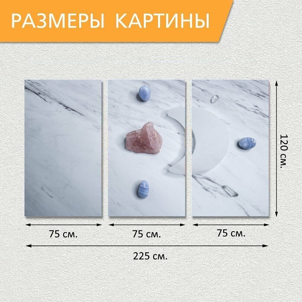 Модульная картина на холсте "Кристаллы, селенит, камни" триптих на подрамнике 225х120 см. для интерьера информация: