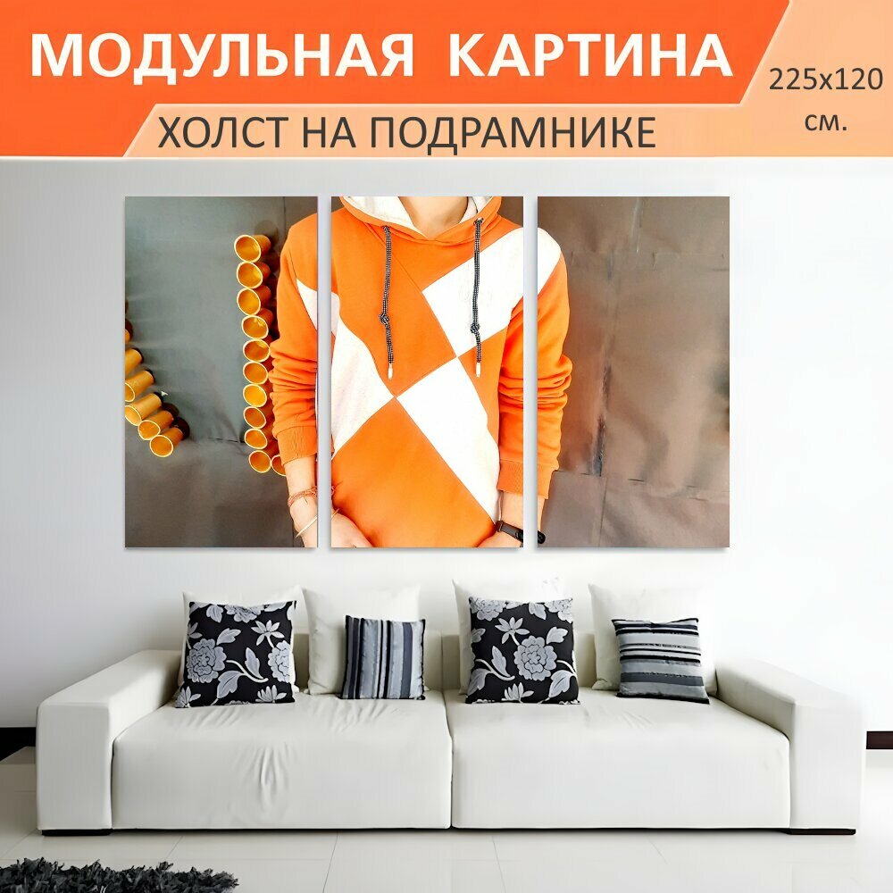 10 цен на Модульная картина на холсте "Шпилька, красивый, мальчик" триптих на подрамнике 225х120 см. для интерьера