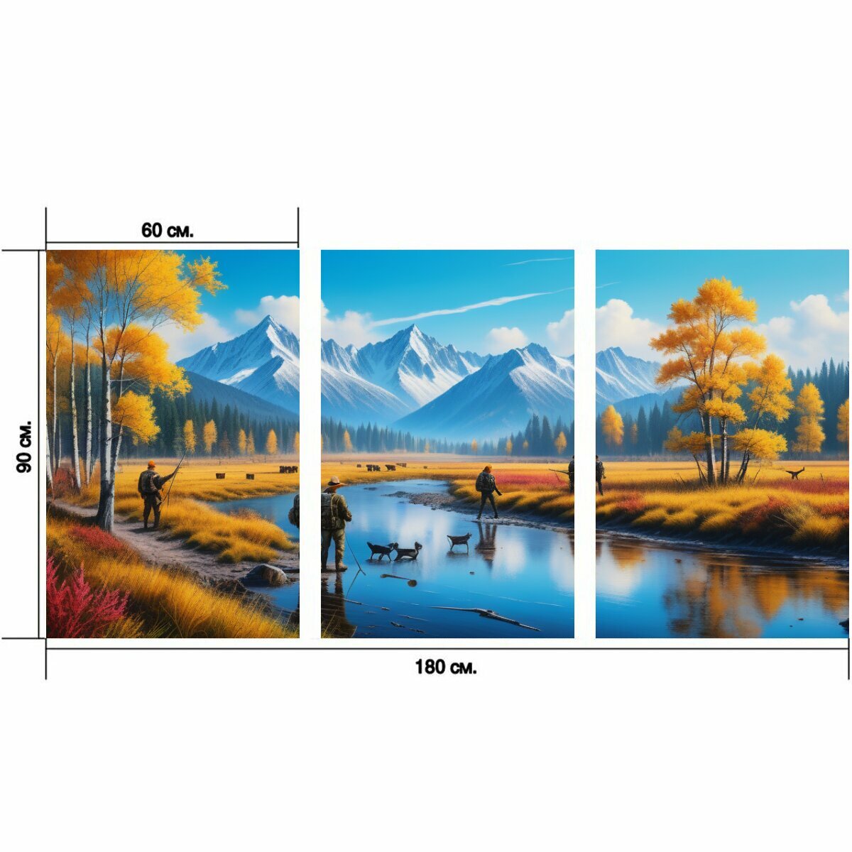 Модульный постер "Пейзаж с охотниками , " 180 x 90 см. для интерьера на стену информация: