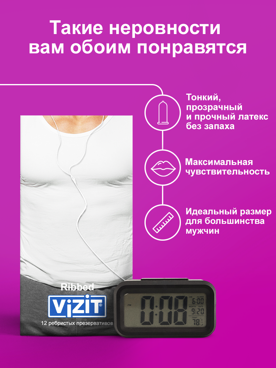 Презервативы латексные VIZIT Ribbed, комплект 12 шт., с ребрами, 101010321 519 ₽