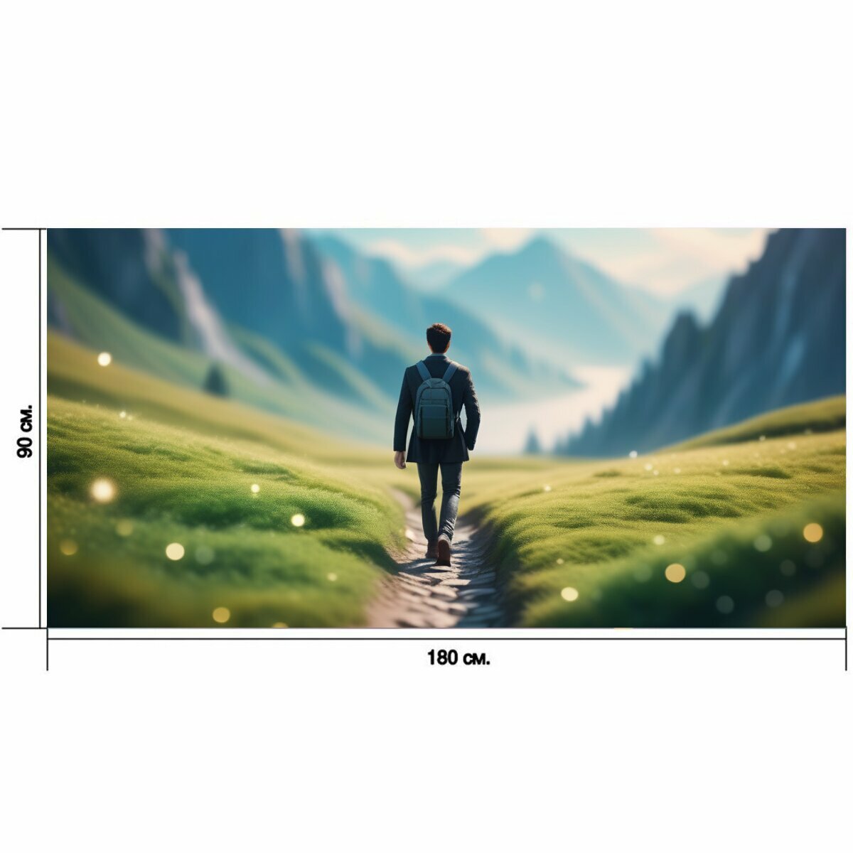 Отзывы на Большой постер "Пейзаж с идущим человеком минимал, " 180 x 90 см. для интерьера на стену