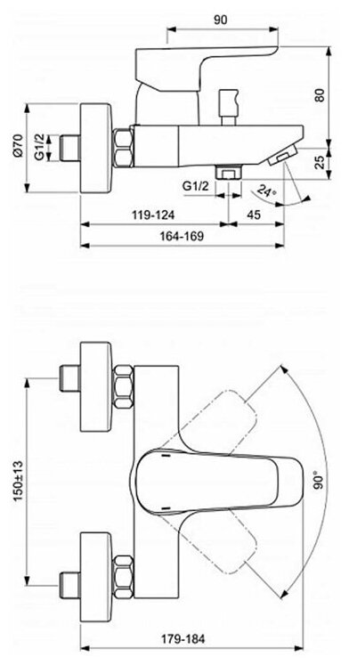 Ideal Standard CERAPLAN 3 Смеситель для ванны/душа B0718AA настенный, однозахватный, цвет: хром 9 696 ₽