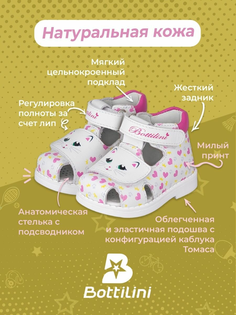 Сандалии BOTTILINI, размер 21 / 13 см, белый, розовый 2 727 ₽